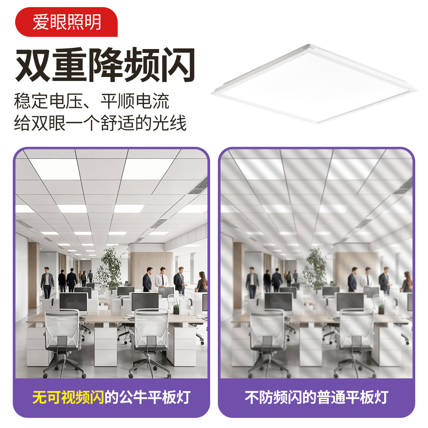公牛面板灯led天花吊灯铝扣板石膏平板灯600×600集成吊顶嵌入式