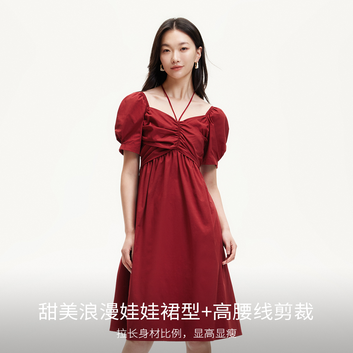 Vero Moda奥莱连衣裙2025夏季新商场同款娃娃裙高腰泡泡袖短袖