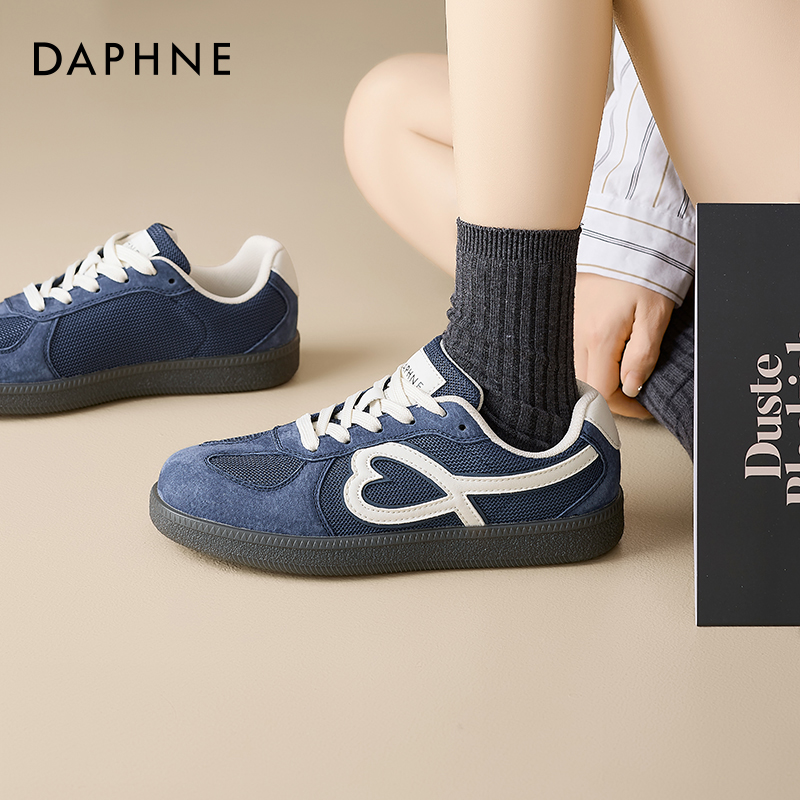 达芙妮蓝色德训鞋女款秋季2025新款复古红色经典低帮百搭平底板鞋