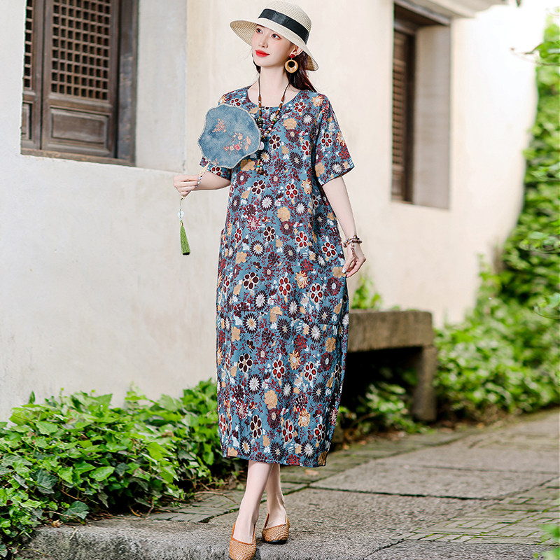 中老年棉麻连衣裙夏棉绸长裙