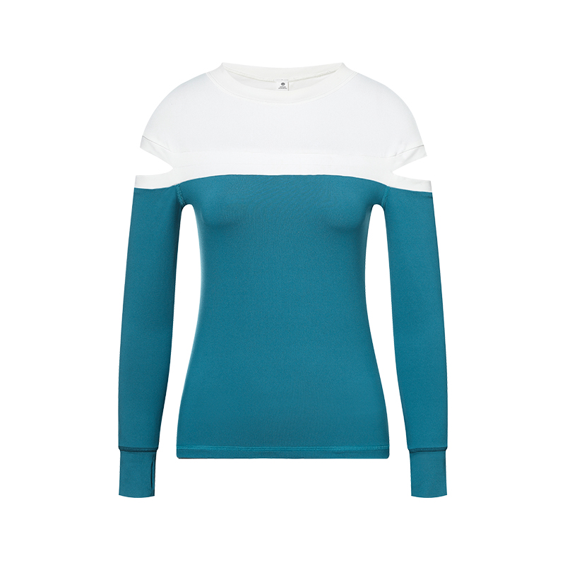 Sumday 运动上衣女长袖T恤镂空健身跑步运动衫拼色速干防晒瑜伽服