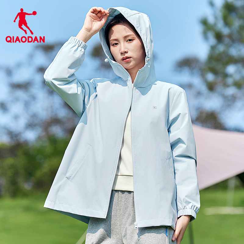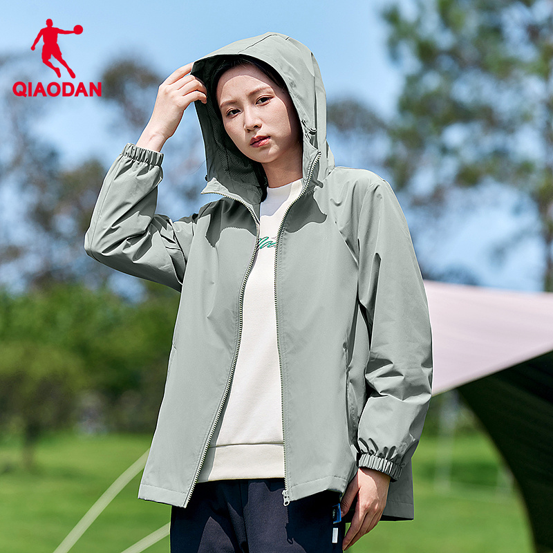 乔丹梭织风衣女2025冬季新款女士防风户外骑行垂钓连帽夹克外套女