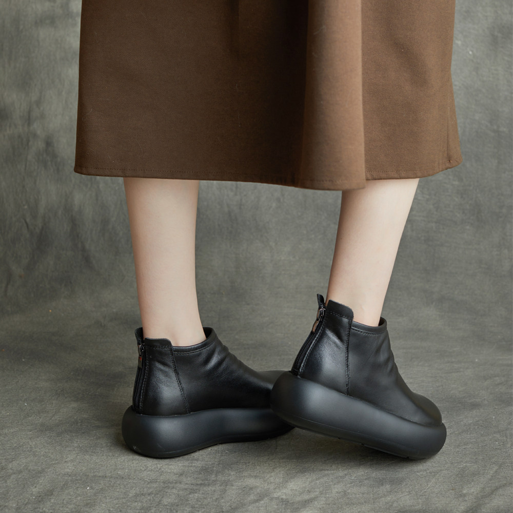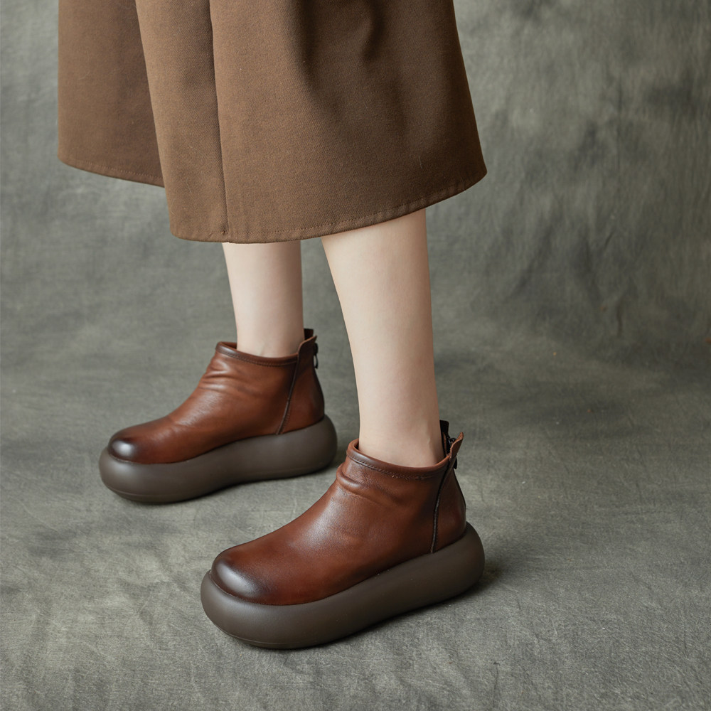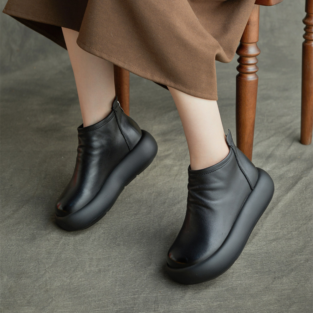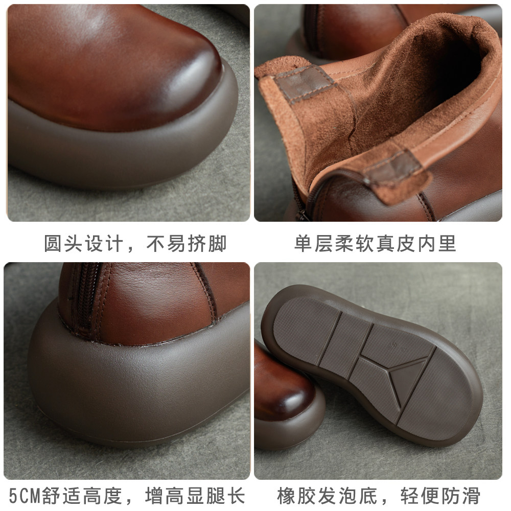 真皮小短靴女2025秋冬新款复古坡跟厚底增高套脚单靴文艺风马丁靴