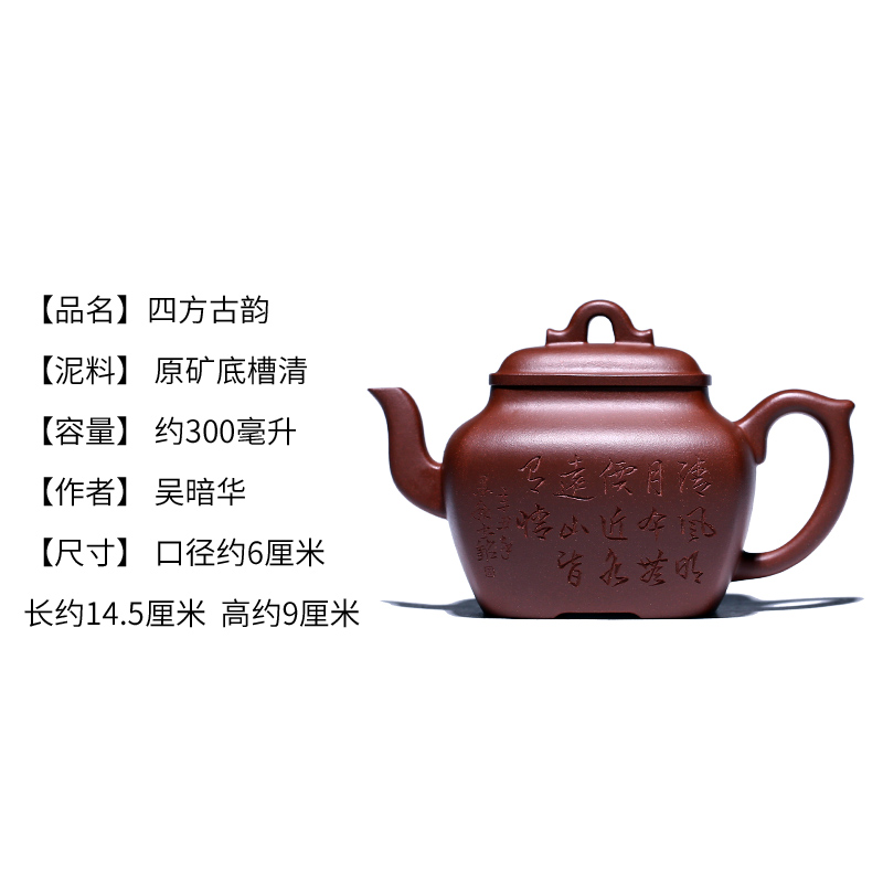 宜兴紫砂壶纯全手工高工泡茶壶功夫茶具套装方壶底槽清四方古韵