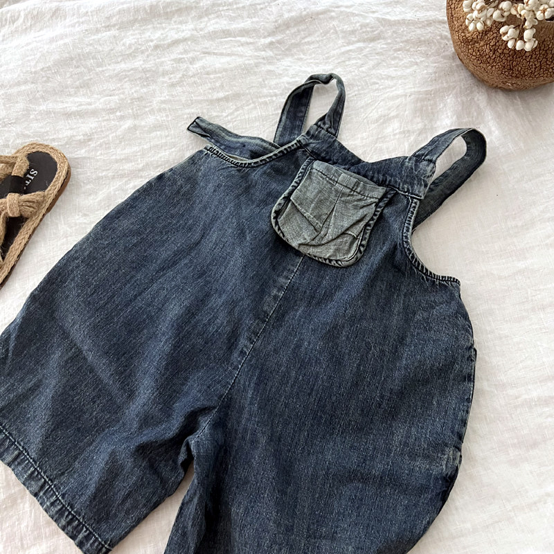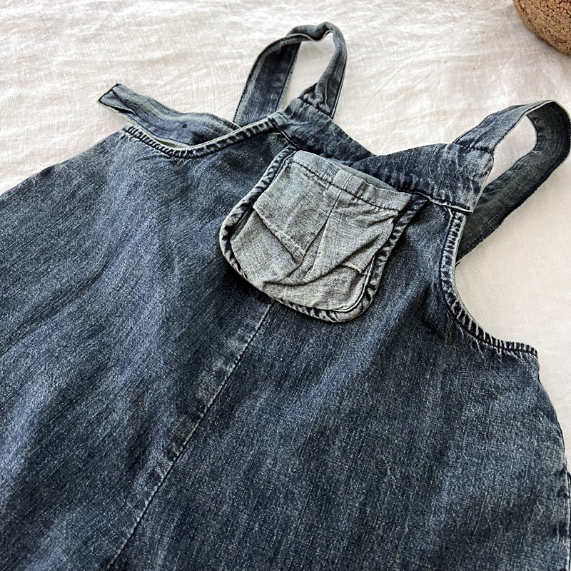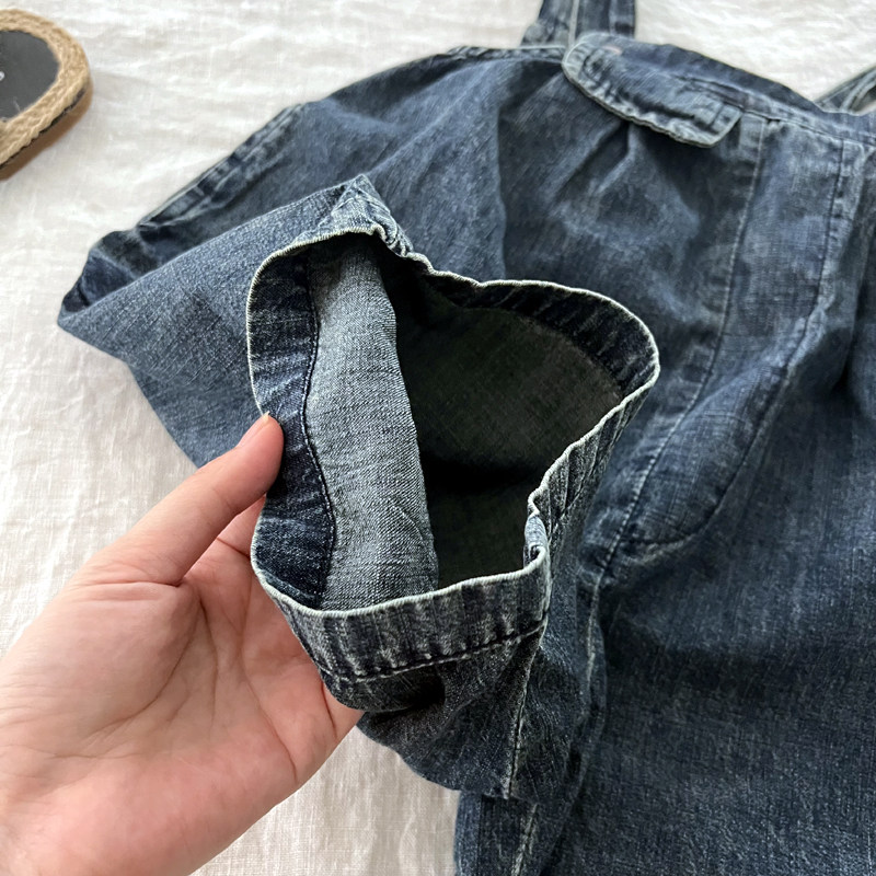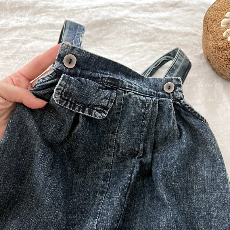 复古超软洗水薄牛仔背带裤 韩国儿童休闲牛仔九分阔腿吊带裤 萌宝
