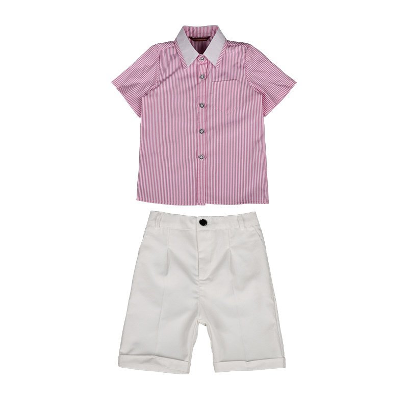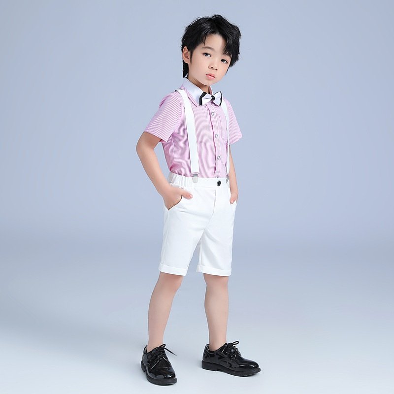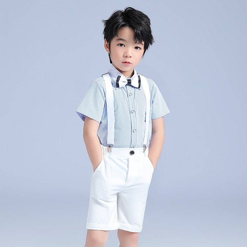 男童礼服春季新款韩版条纹短袖背带裤套装儿童钢琴主持演出服