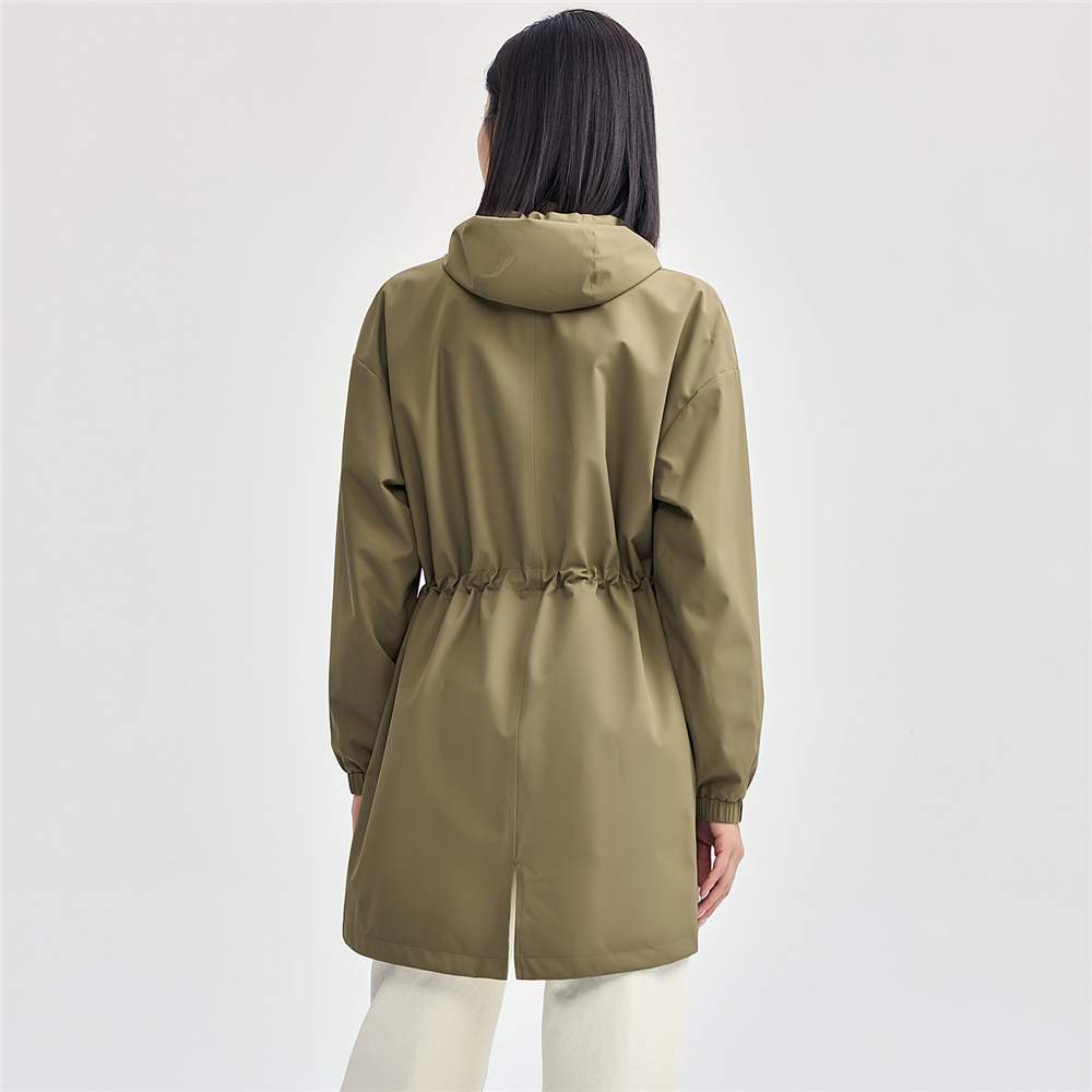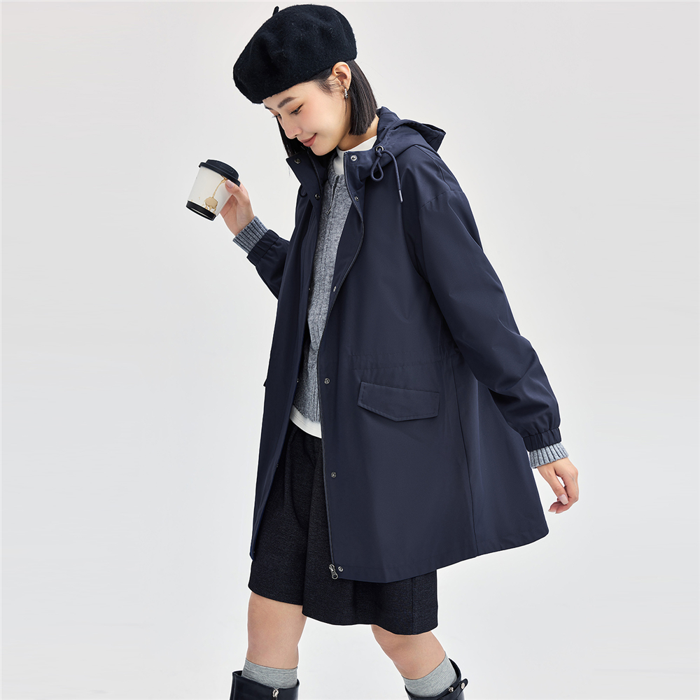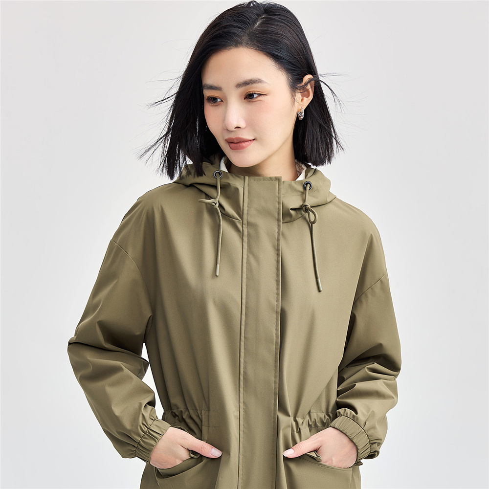 佐丹奴外套女装抽绳收腰连帽梭织中长款风衣 05374673