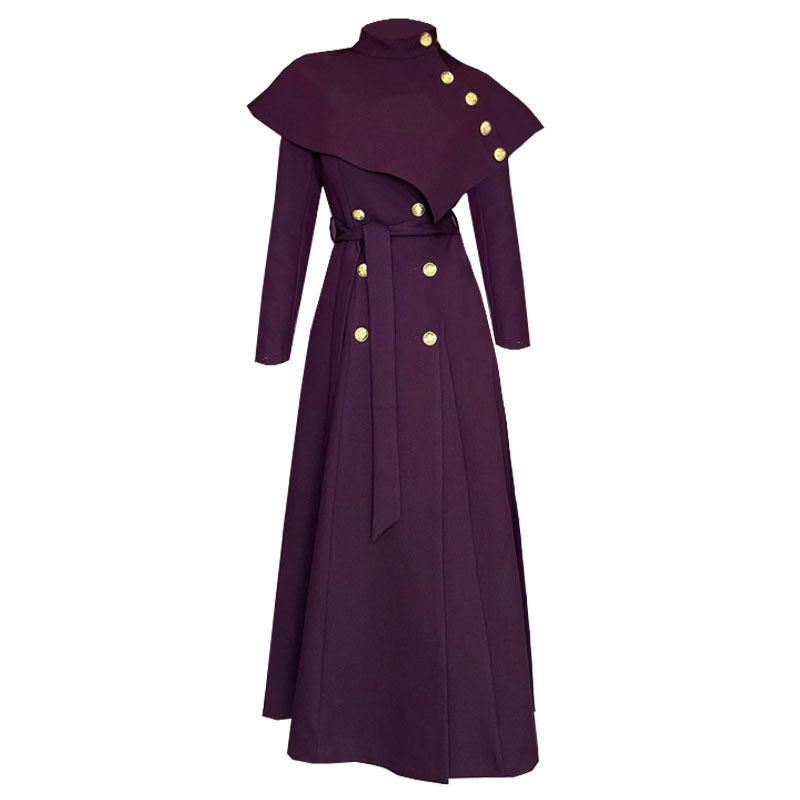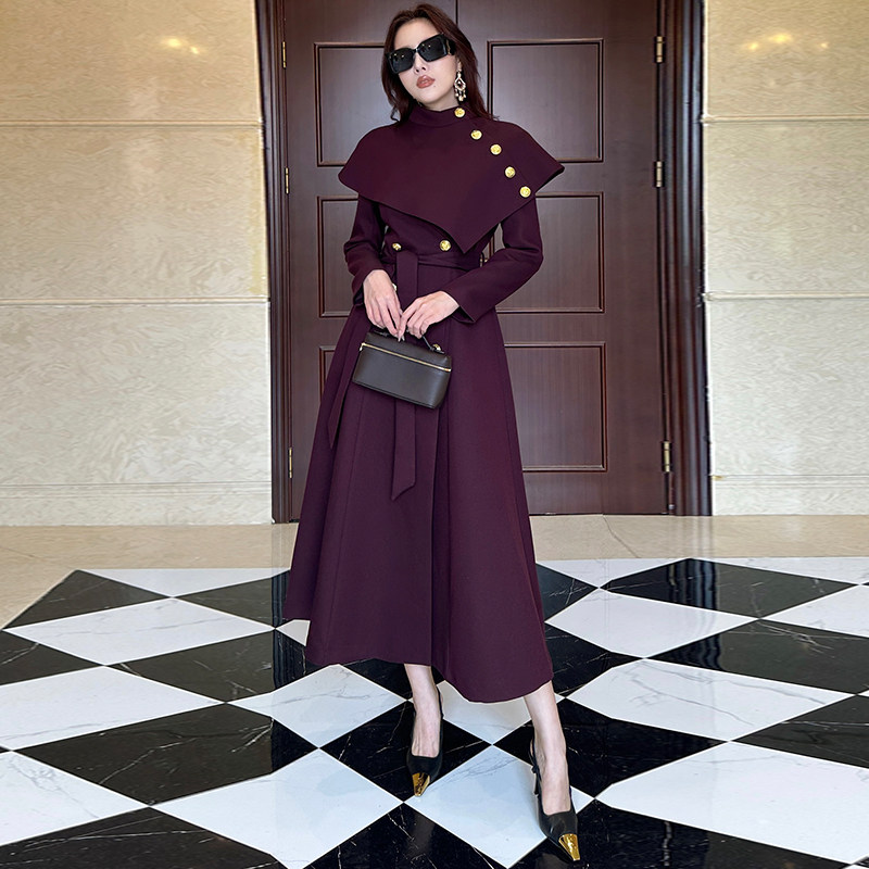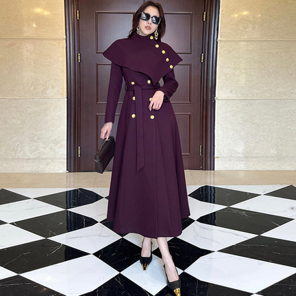 翻领披肩双排扣秋冬风衣外女长款