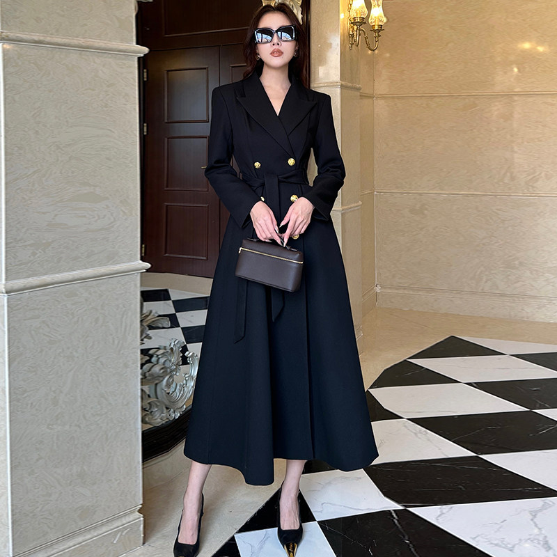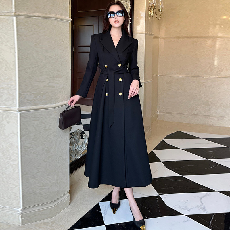披肩修身显瘦气质收腰双排扣长款高个子高级感风衣外套女2025新款