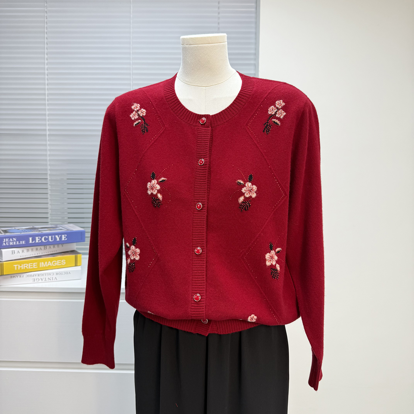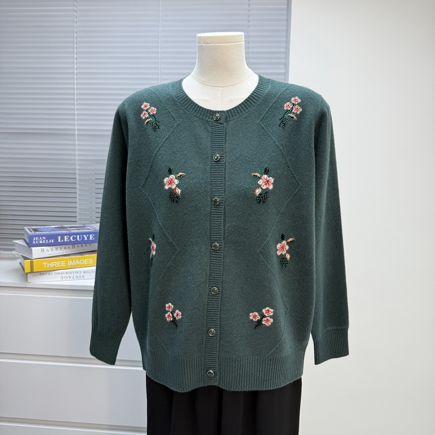 妈妈装羊毛衫女100纯羊毛开衫绣花毛衣中老年秋冬外套宽松上衣·