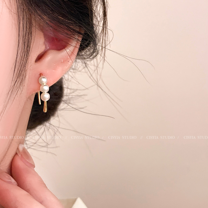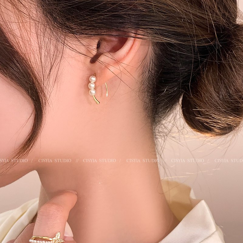 金色珍珠耳钉女2025新款春天气质轻奢高级感小众设计独特耳饰耳环