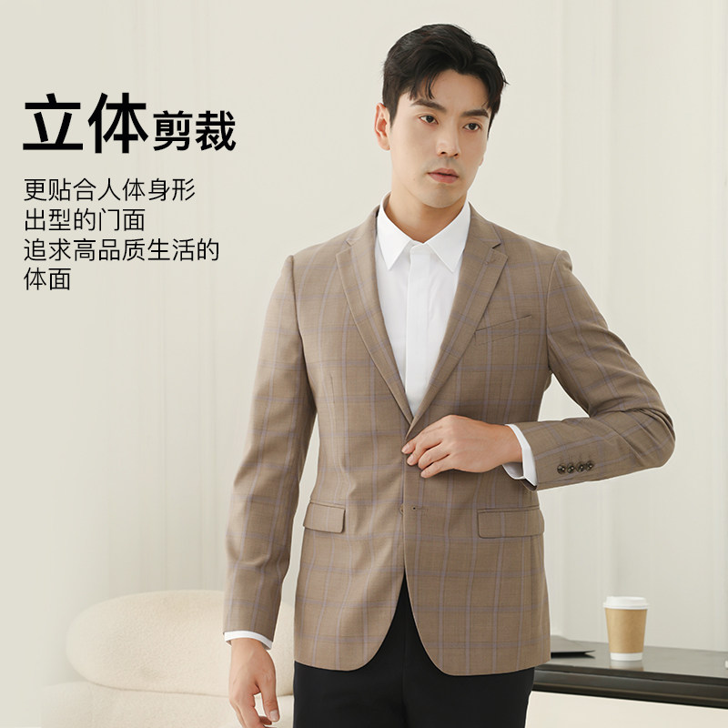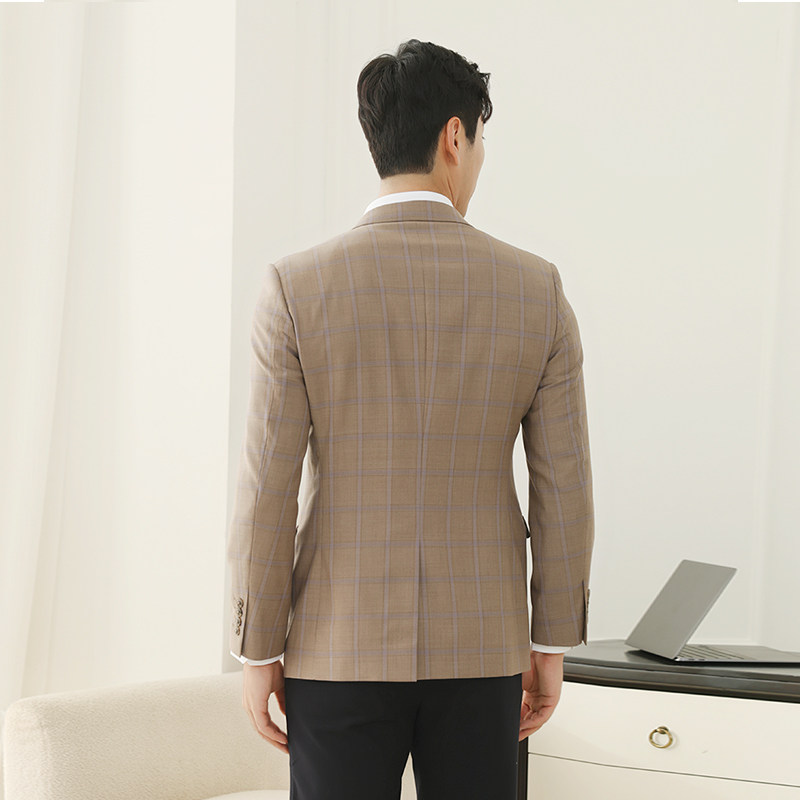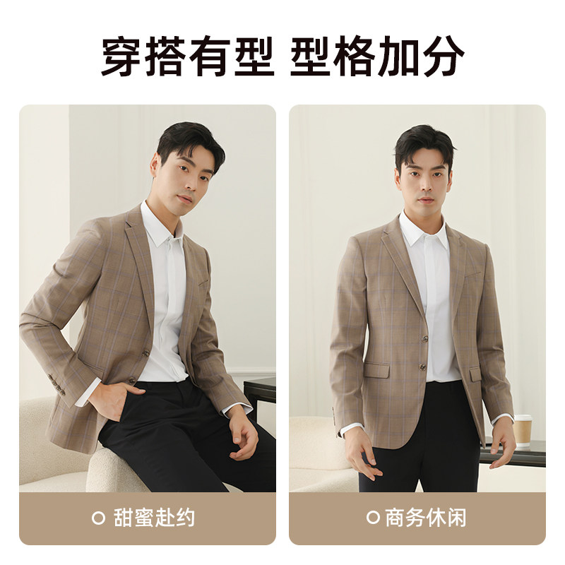 男士绵羊毛格纹通勤西服