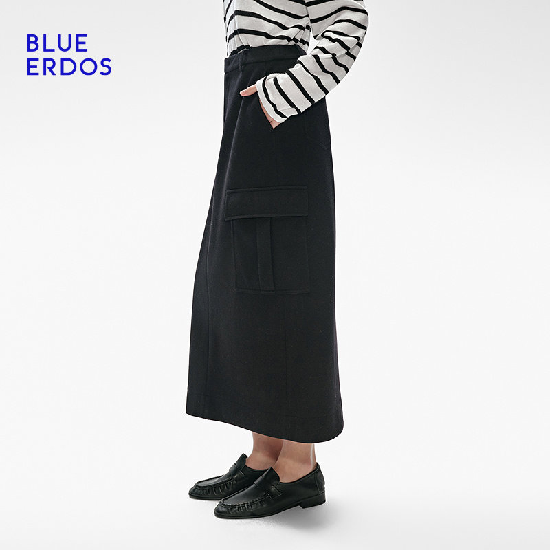 BLUE ERDOS冬季气质通勤大口袋H型直筒半身裙女B255F3004