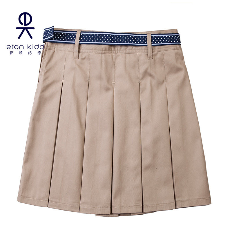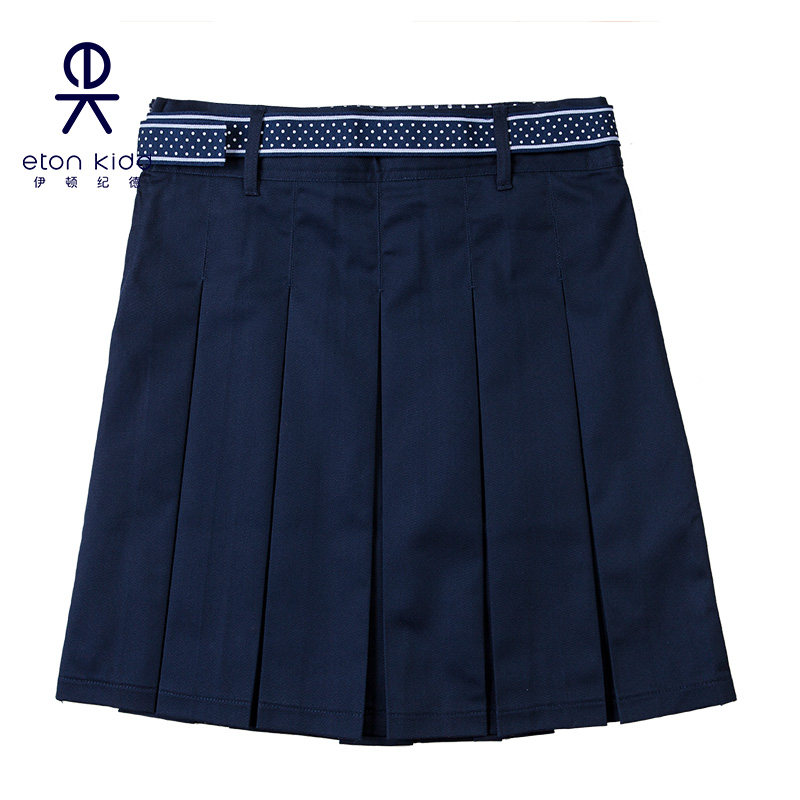 伊顿纪德校服女童半身裙儿童蝴蝶结腰带短裙学生纯色百褶裙10Q262