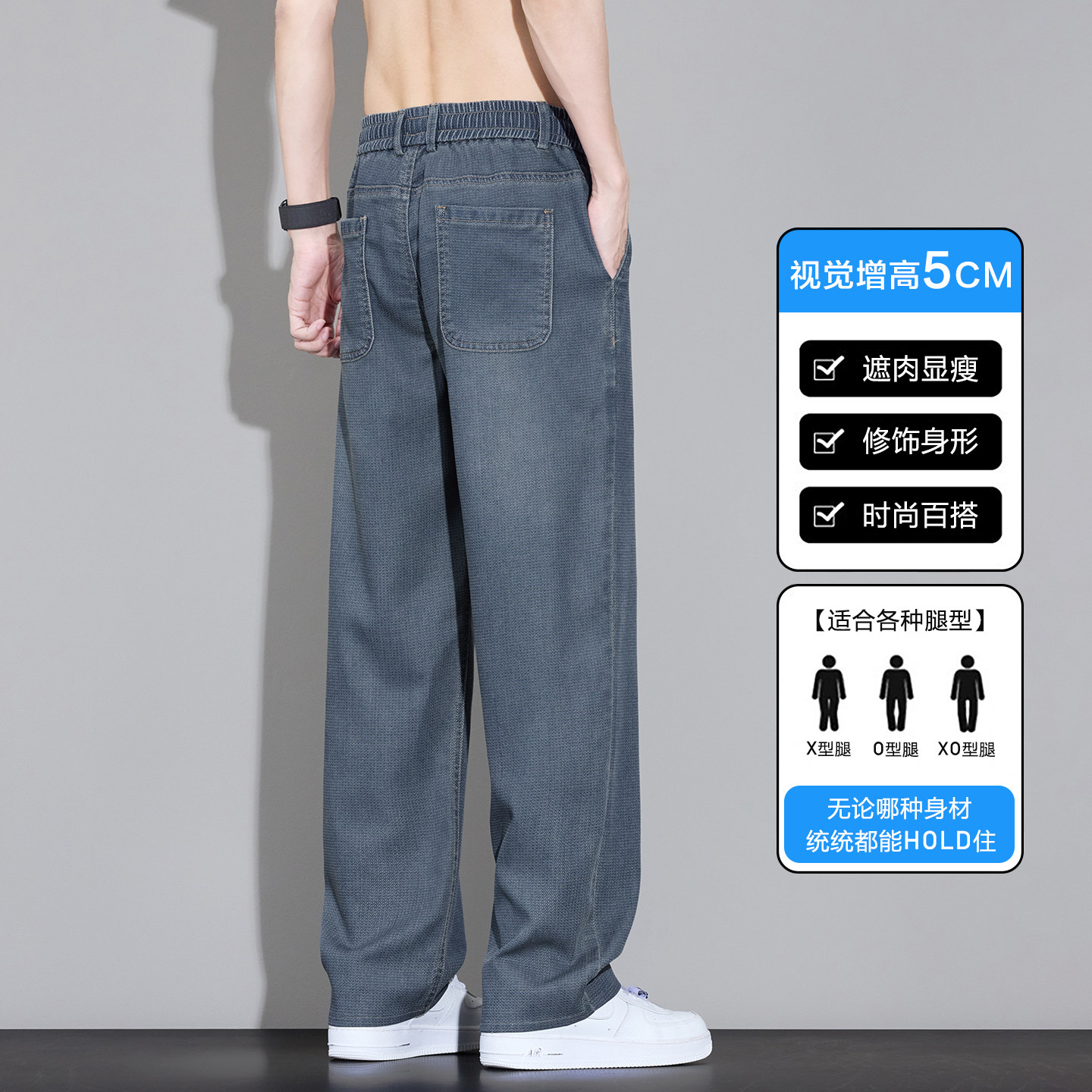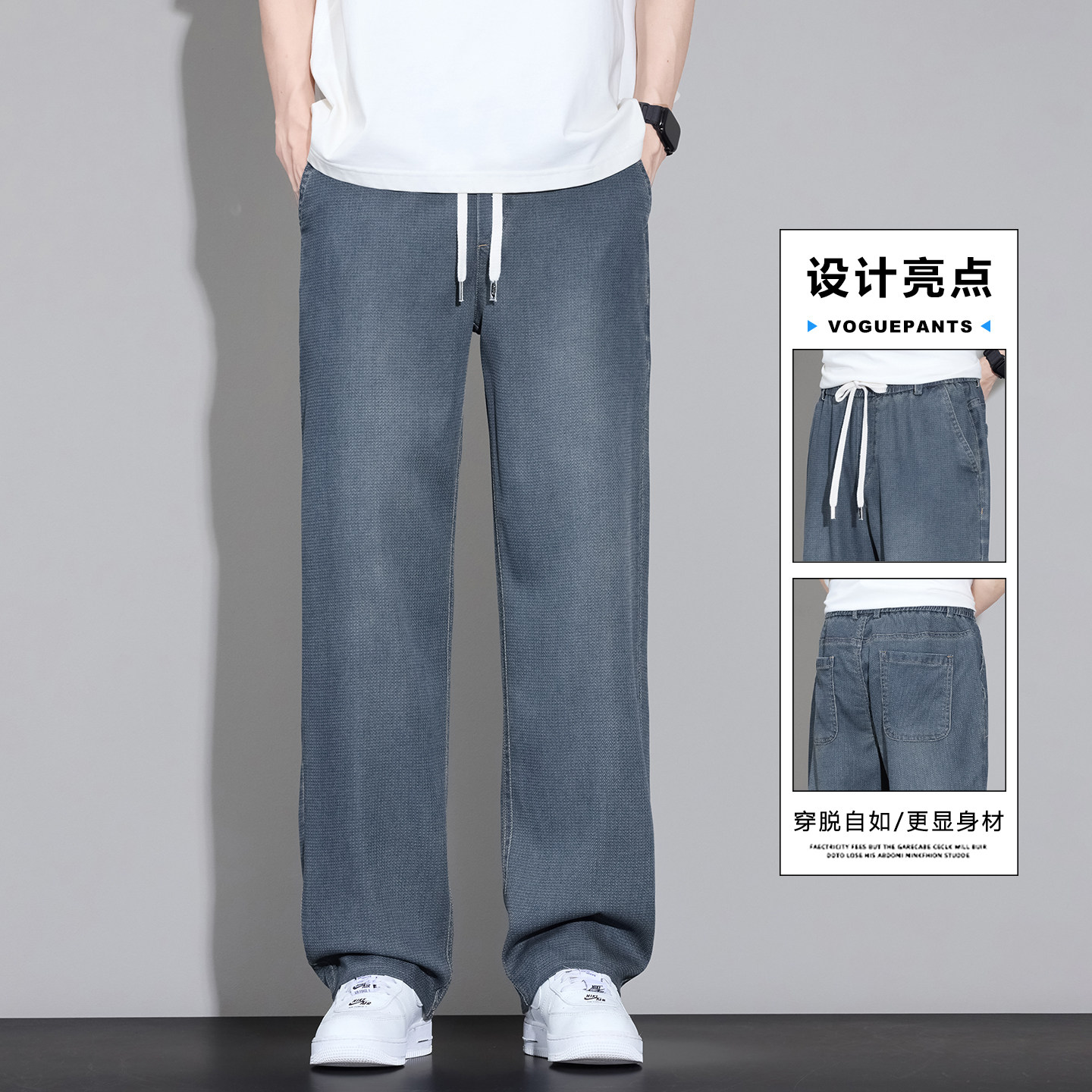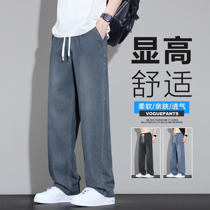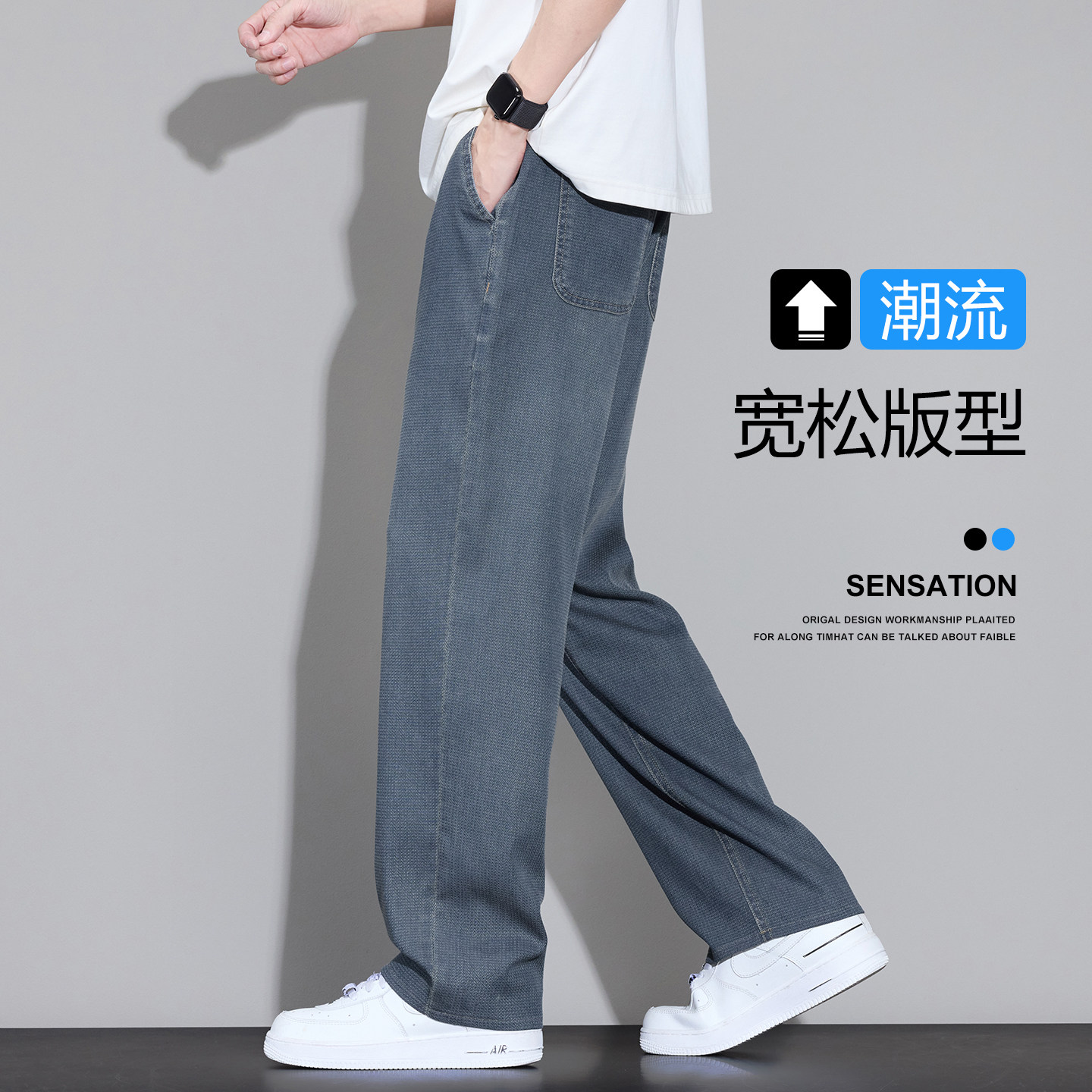 春夏季新款天丝牛仔裤男士潮牌2026年百搭松紧腰美式宽松直筒长裤