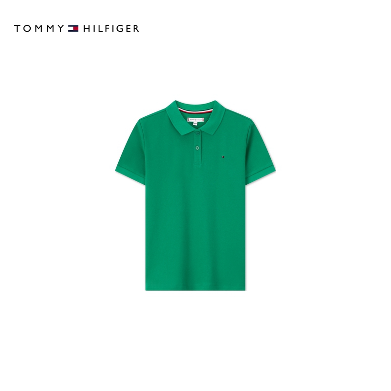 Tommy夏季童装女珠地肌理经典休闲小绣标纯色短袖T恤POLO衫