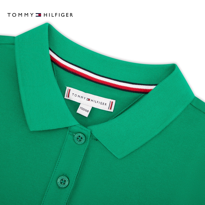 Tommy童装女珠地肌理净色POLO衫