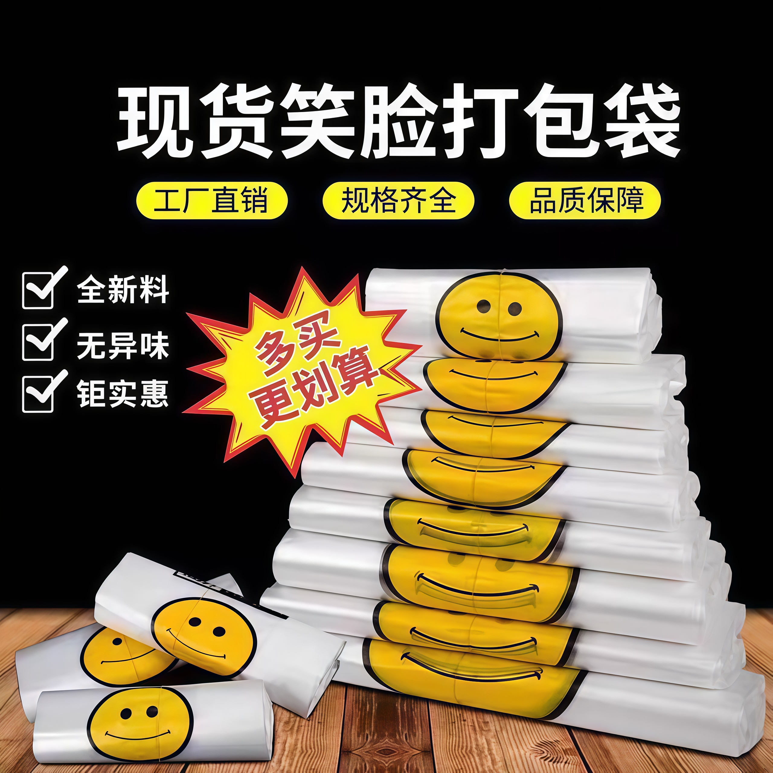 批发加厚笑脸塑料袋透明商用食品级外卖打包袋手提购物方便背心袋