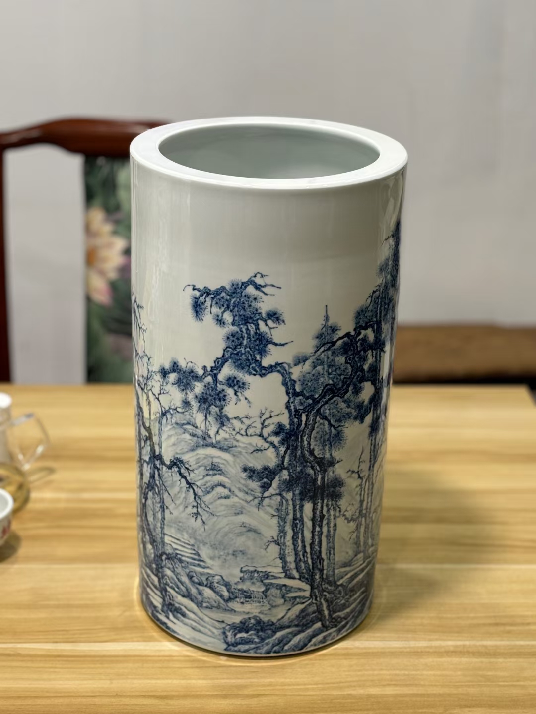 王正珺陶瓷青花瓷山水画大号落地插花瓶客厅装饰品摆件景德镇瓷器