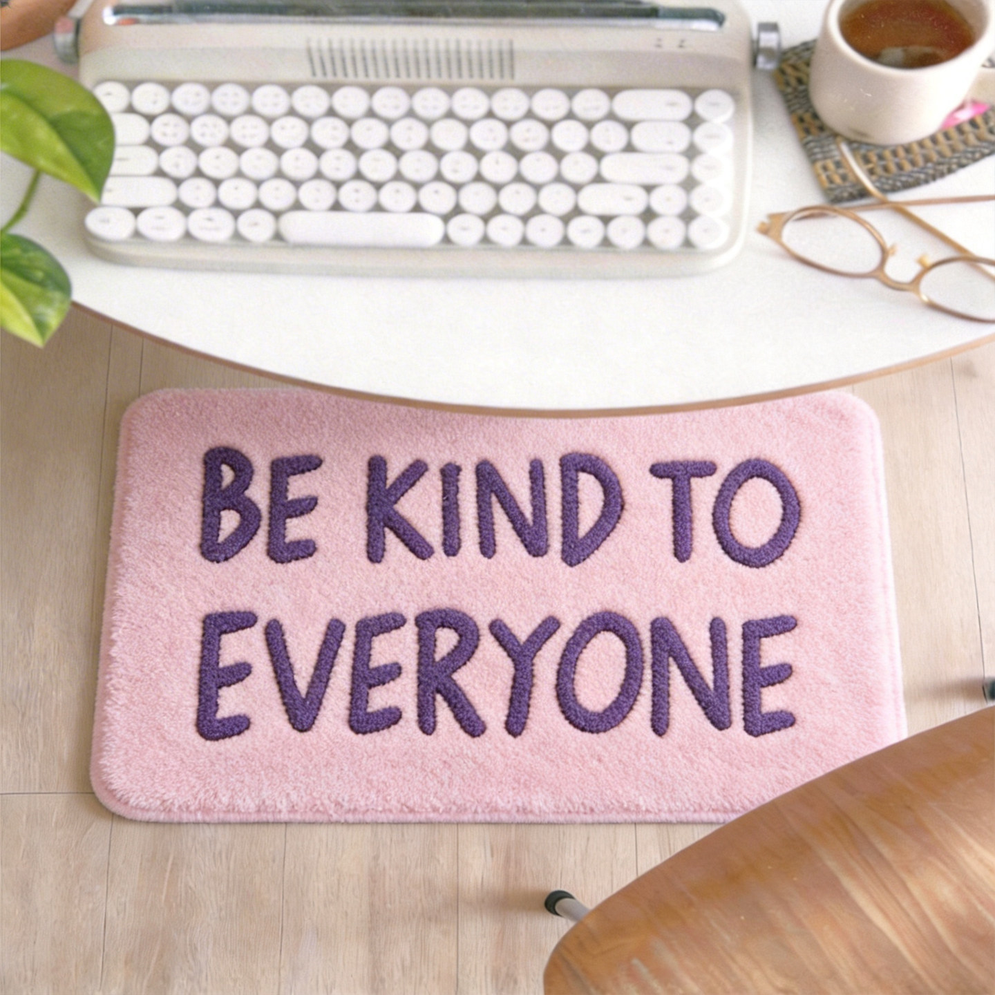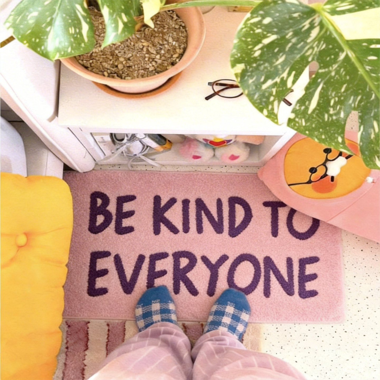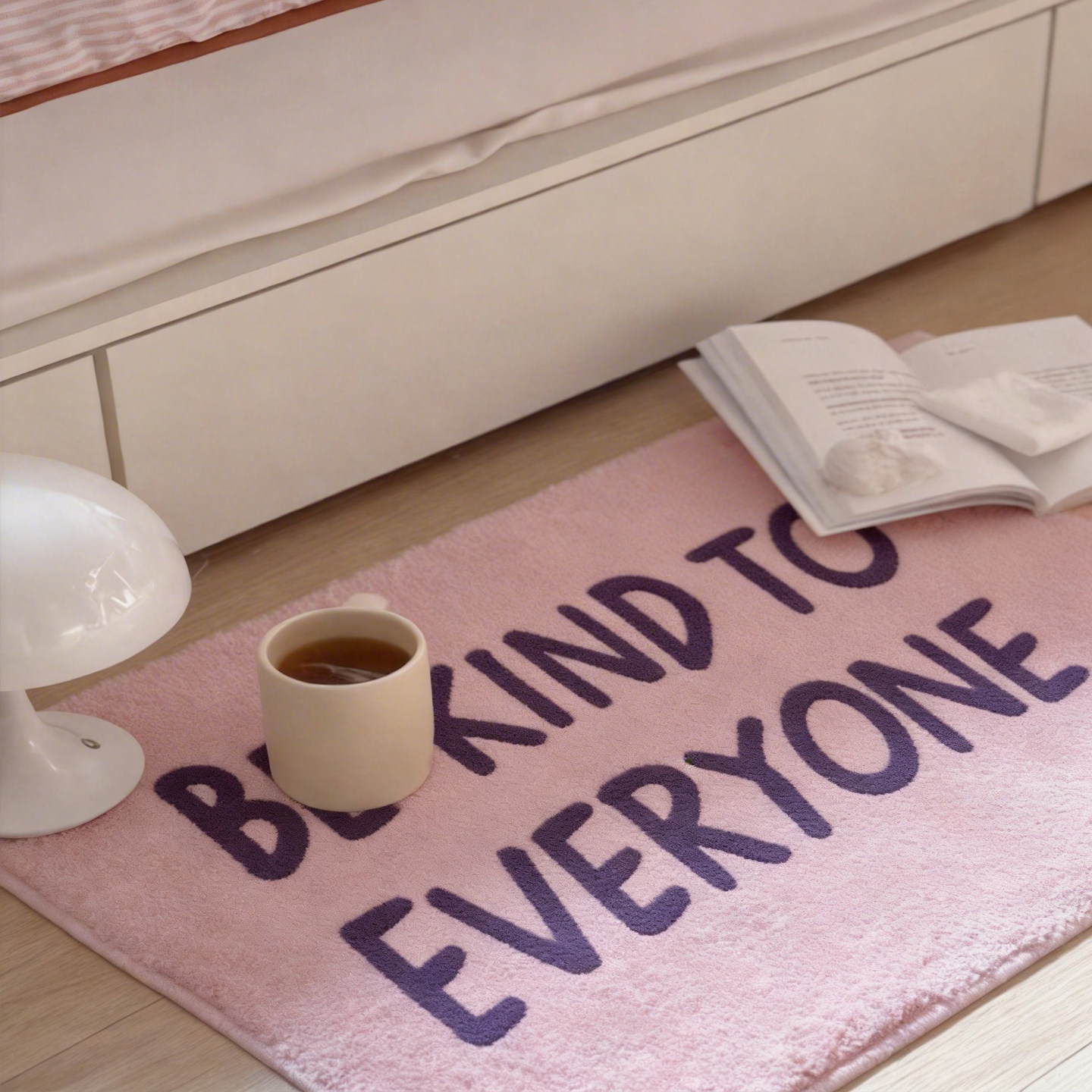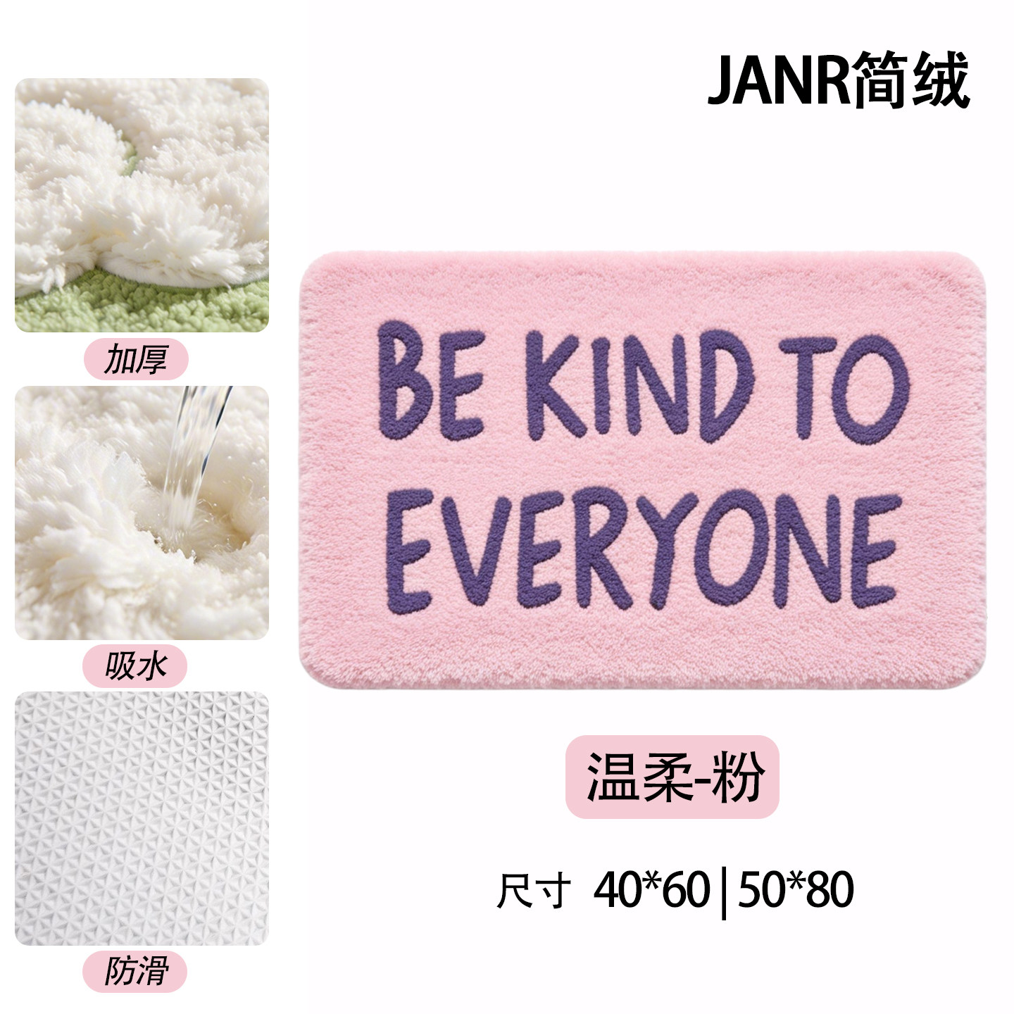 少女心粉紫英文植绒地垫家用卫生间防滑脚垫卧室床边簇绒地毯门垫