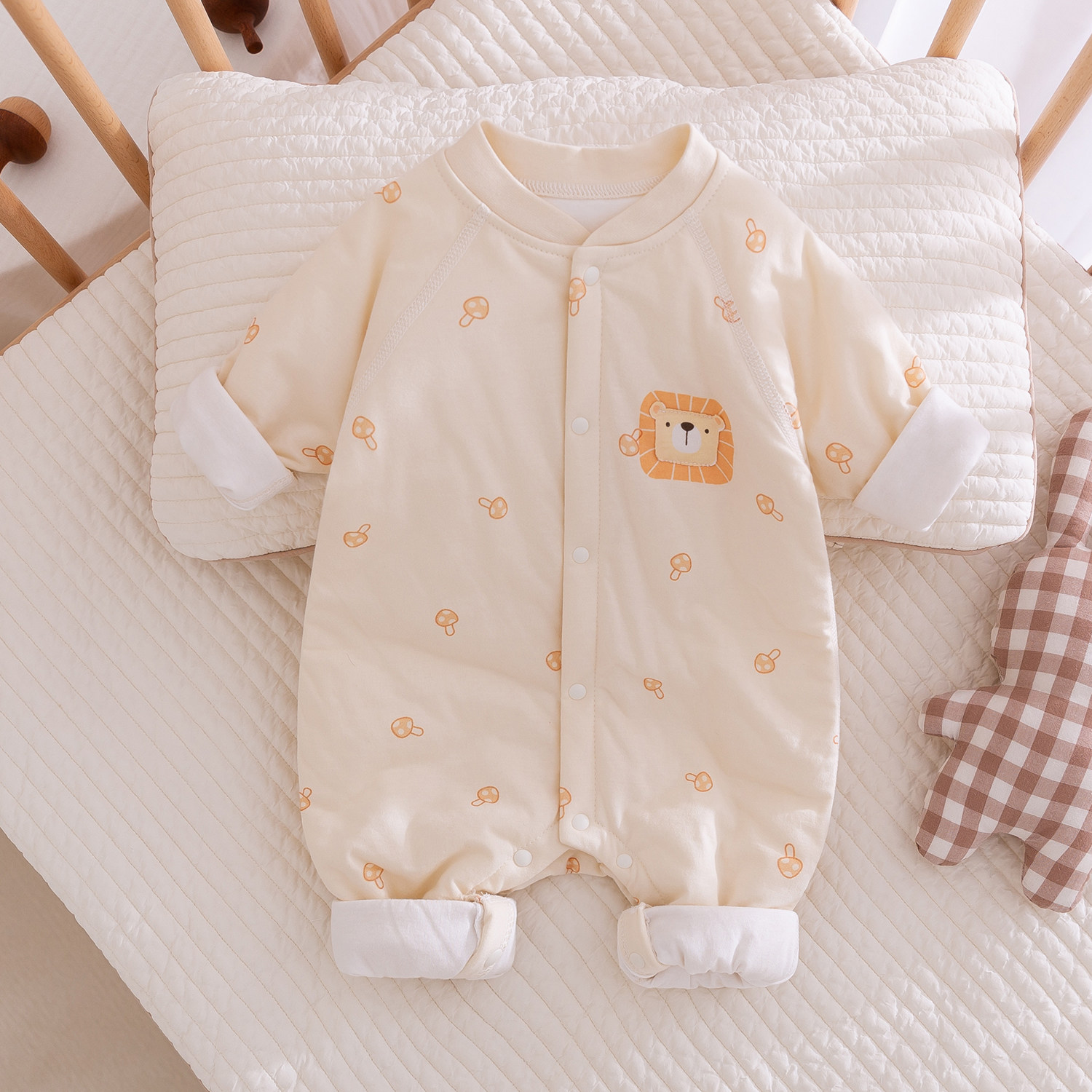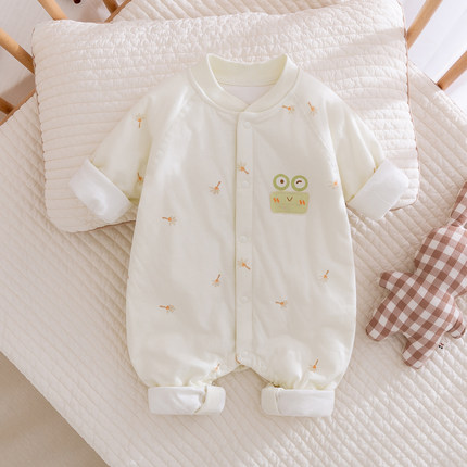 婴儿连体衣秋冬季夹棉薄棉衣哈衣新生儿纯棉衣服宝宝爬服连身衣