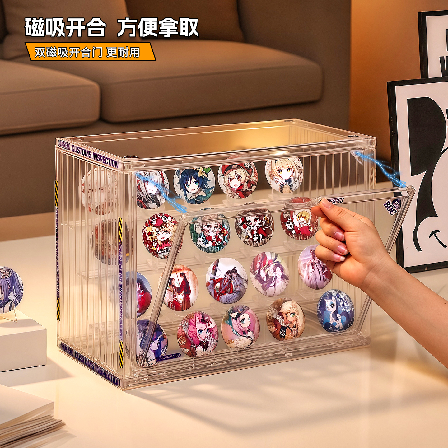 吧唧展示架徽章谷子纪念币奖牌章收纳盒亚克力阶梯式立牌放小痛柜