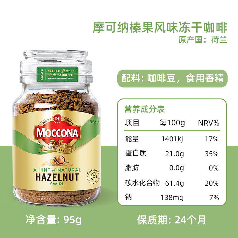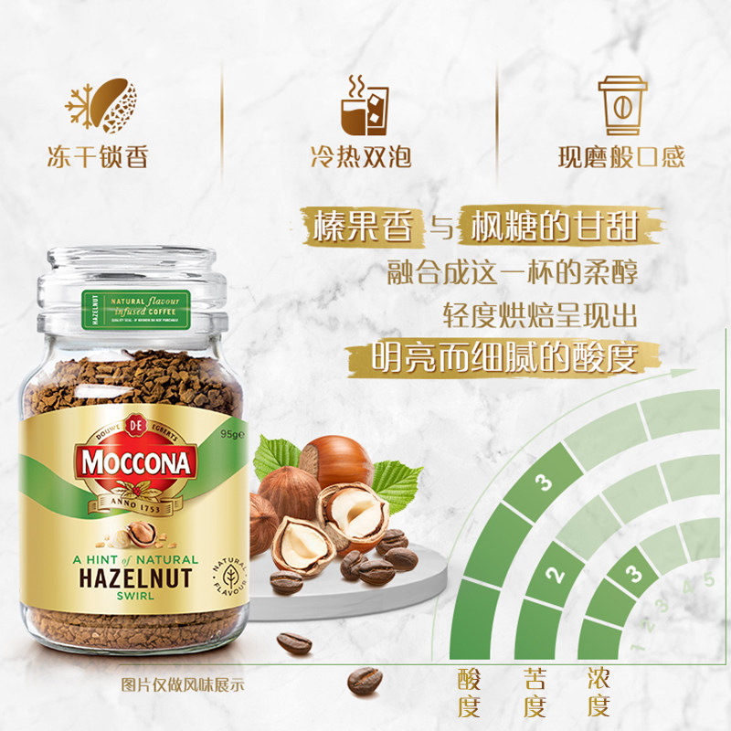 【进口】摩可纳Moccona冷萃冻干黑咖啡榛果风味美式速溶