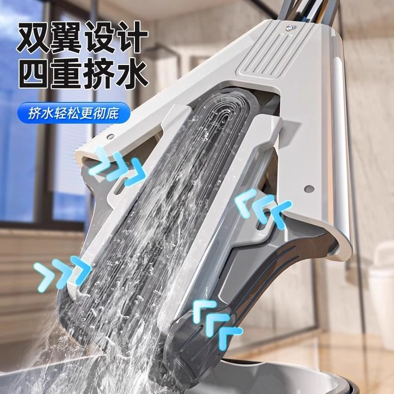 免手洗海绵拖把家用一拖净2025新款吸水对折式胶棉头地拖墩布带桶