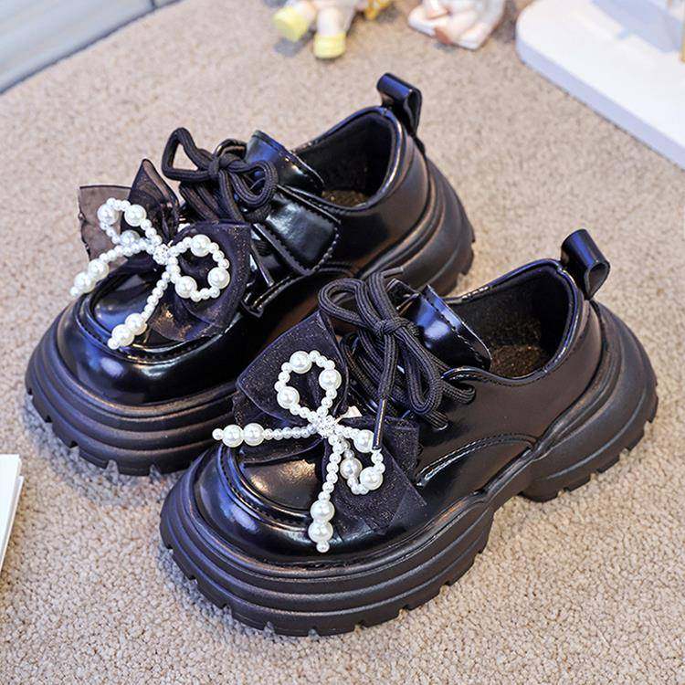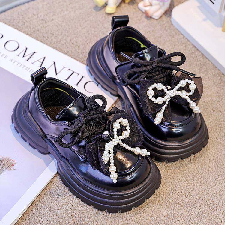 KFT脚王女童小皮鞋秋季2025新款儿童软底黑色单鞋中大童女孩蝴蝶