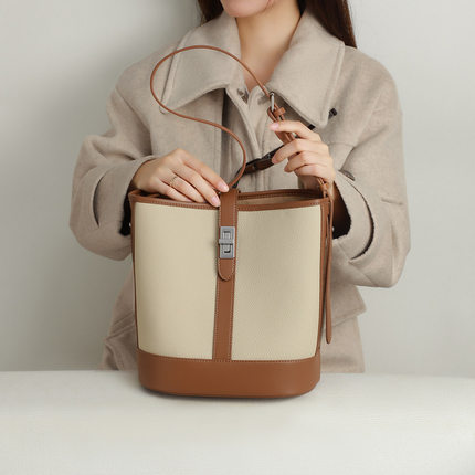 水桶包包2025新款斜挎女包真皮大容量高级感夏季通勤单肩包箱包