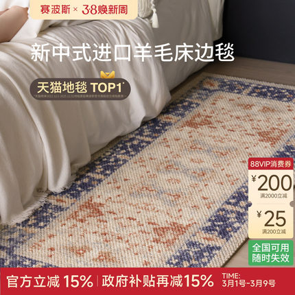 赛波斯青玉海棠进口羊毛床边毯新中式飘窗卧室床尾地毯轻奢高级