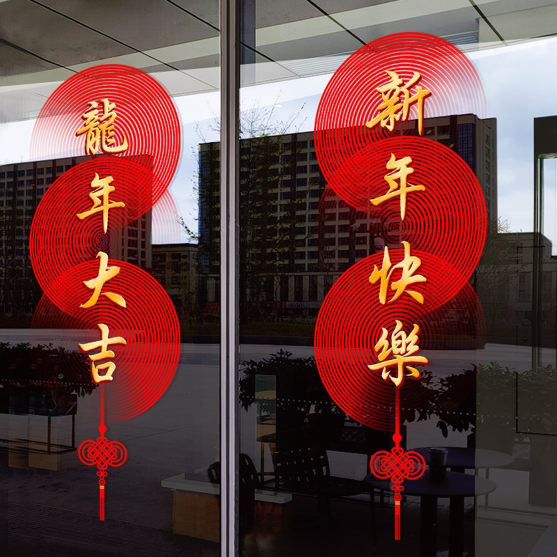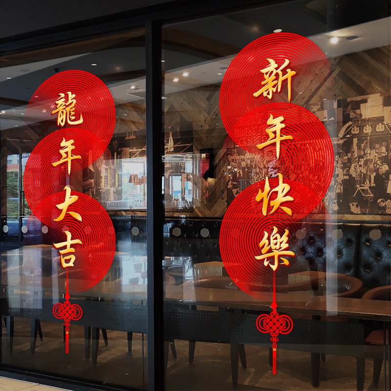 2024静电贴新年龙年装饰窗花玻璃贴纸春节门贴窗贴场景布置玻璃贴