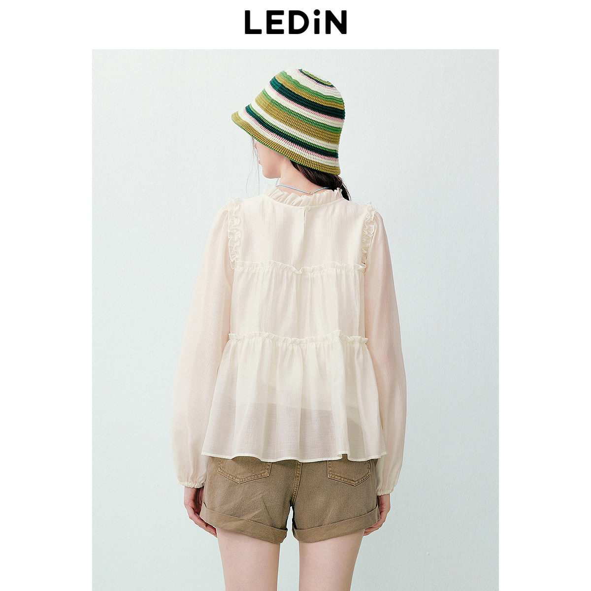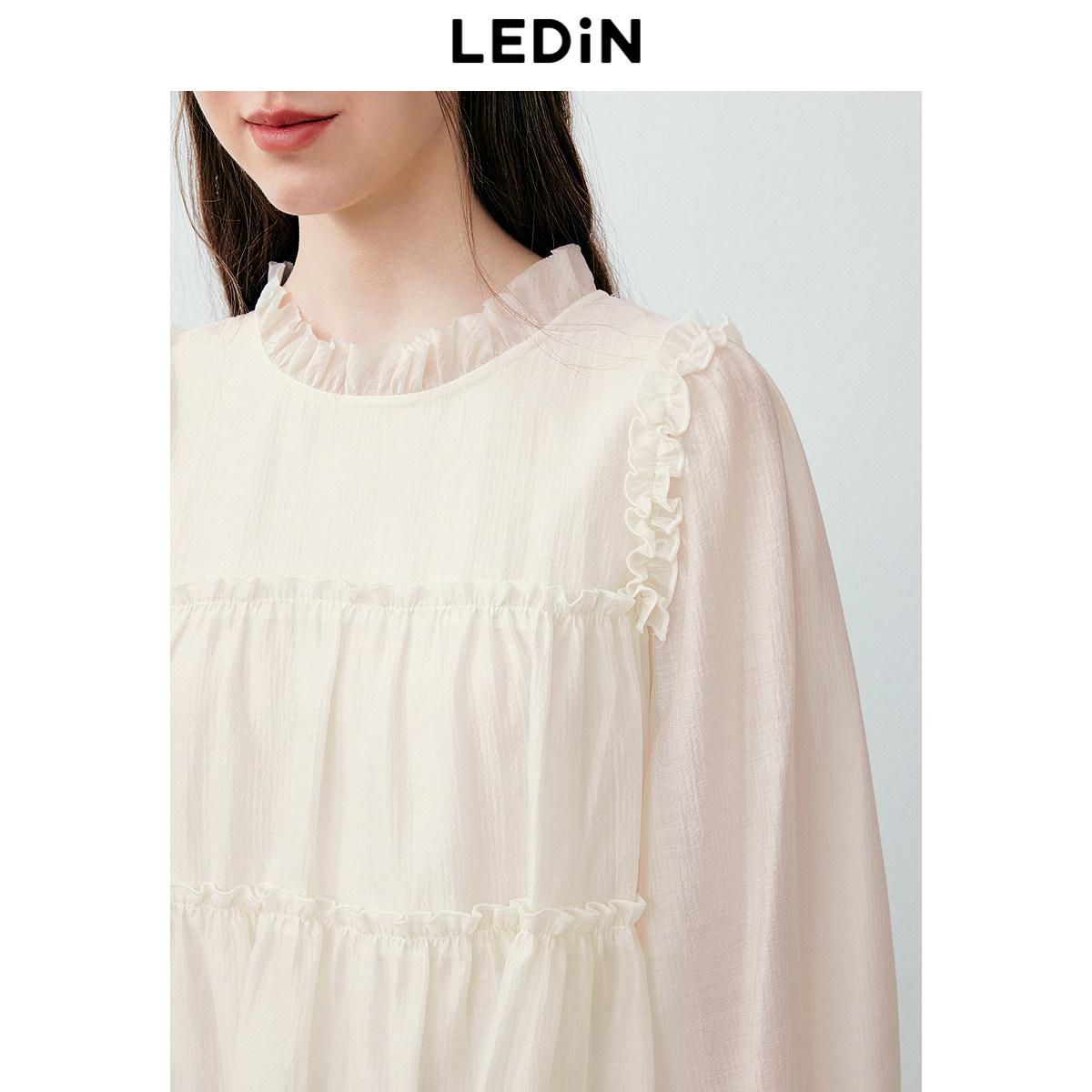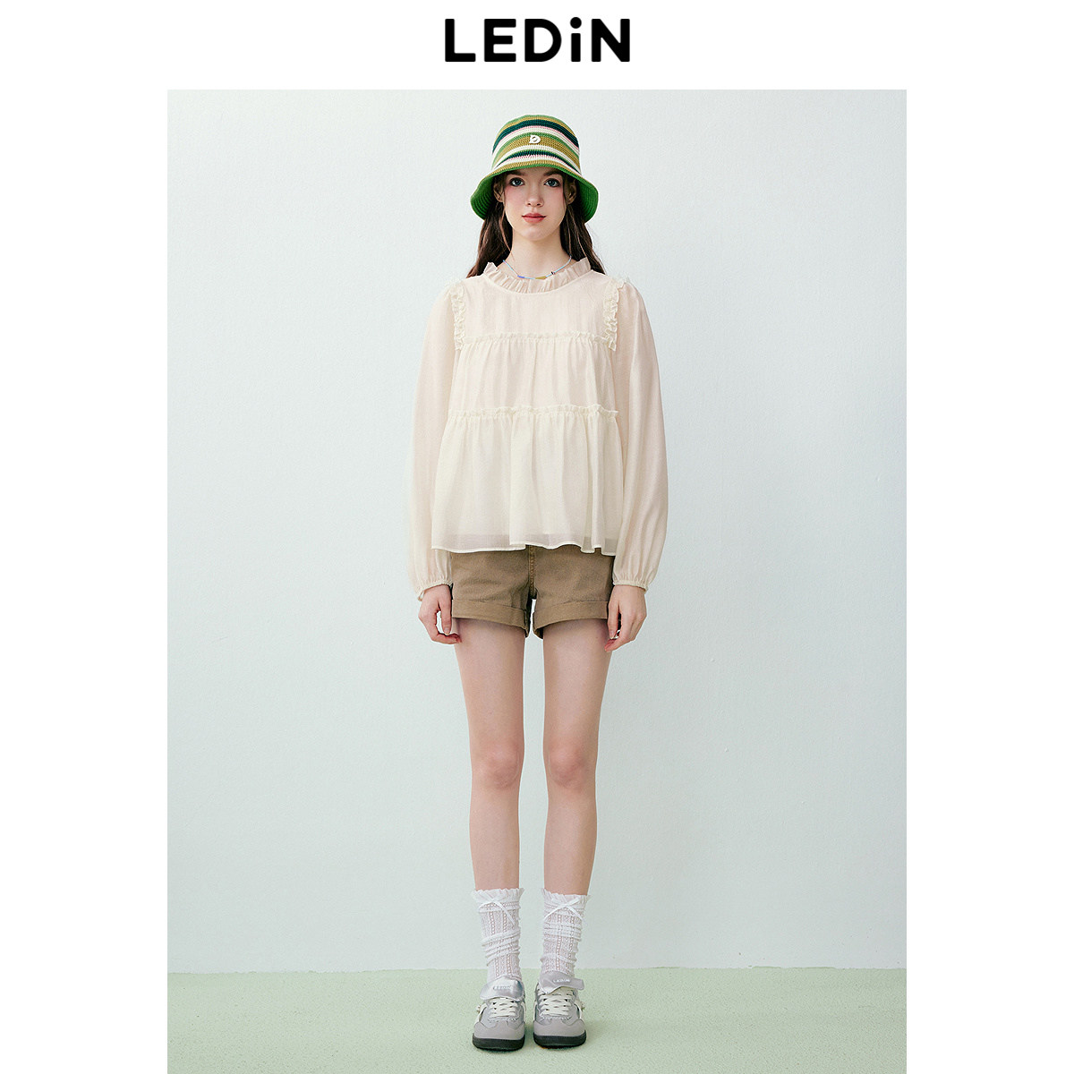 乐町甜美少女感小A版木耳边设计雪纺衫秋季新款减龄好看上衣