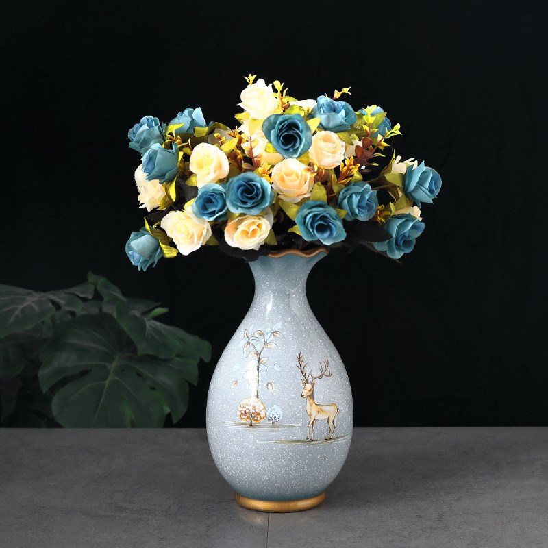 欧式家居摆件陶瓷落地大花瓶中式客厅花插装饰品结婚礼物装饰摆件