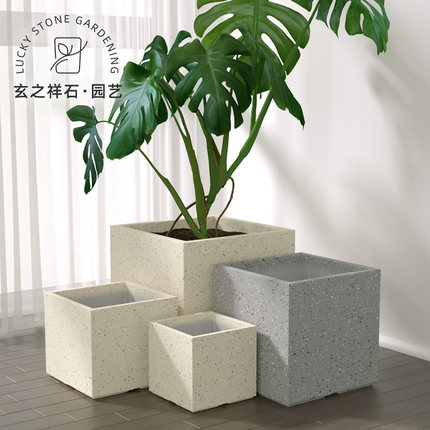 方形水泥花盆轻奢高级感家用镁泥北欧风植物盆栽阳台客厅落地大号