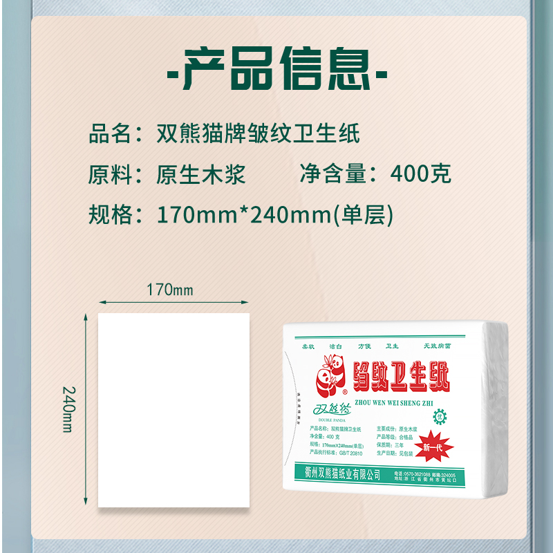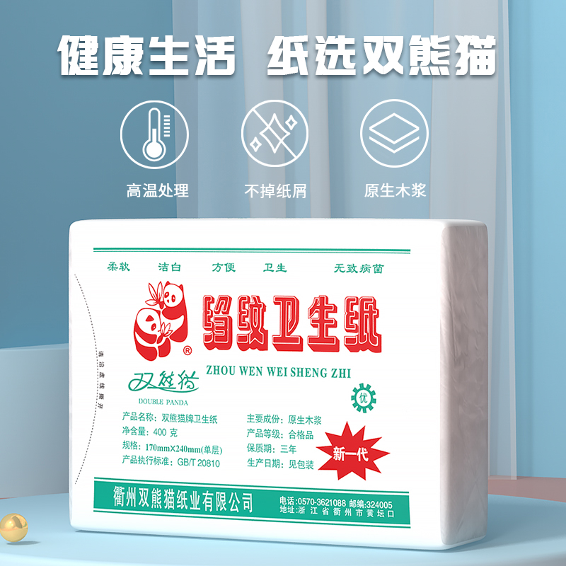 双熊猫平板卫生纸400g7包原木皱纹纸草纸刀切纸家用实惠速溶厕纸