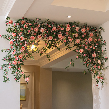仿真玫瑰花藤假花藤条空调管道缠绕藤蔓装饰遮挡吊顶花植物造景花