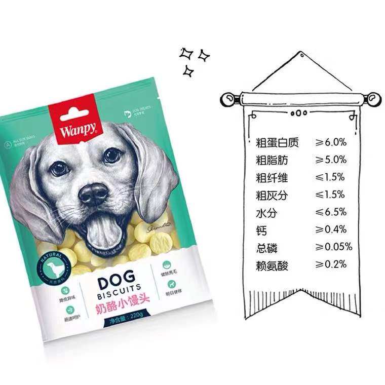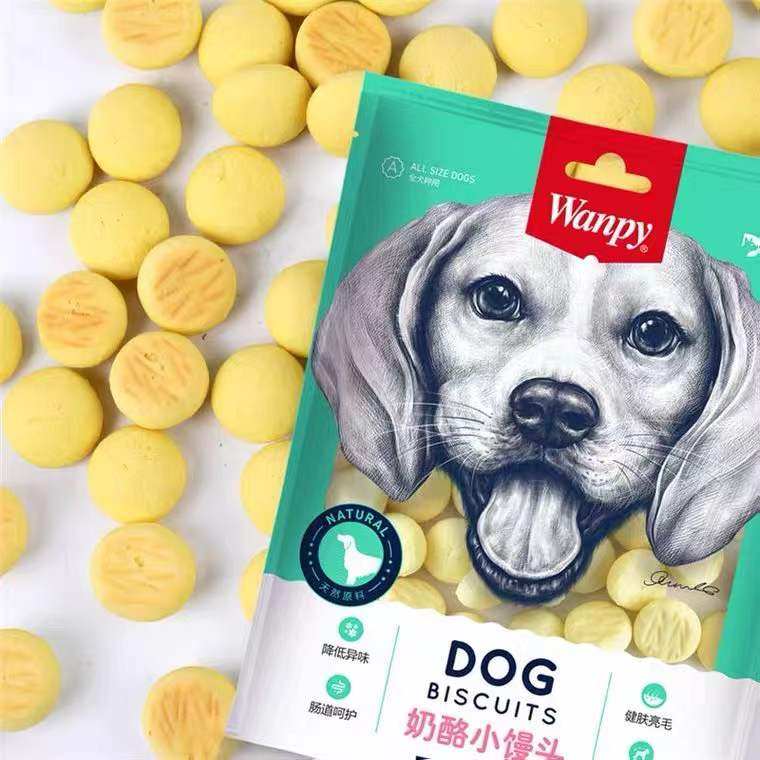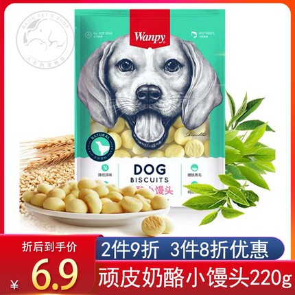 Wanpy顽皮奶酪小馒头消臭饼干220g狗零食磨牙洁齿去口臭泰迪比熊