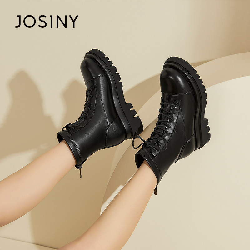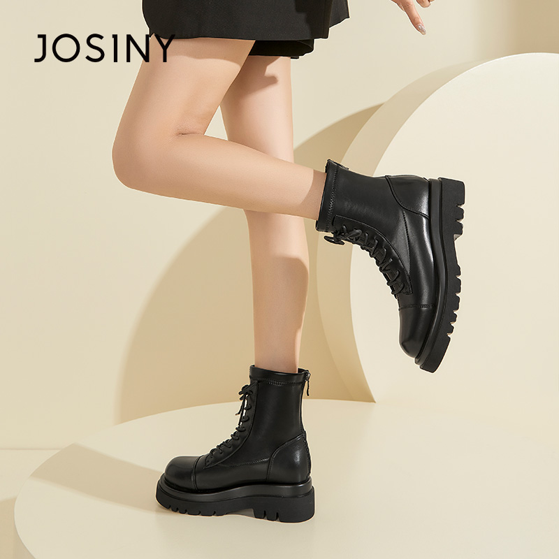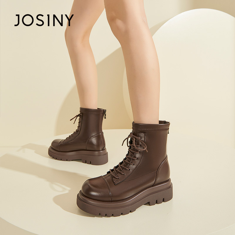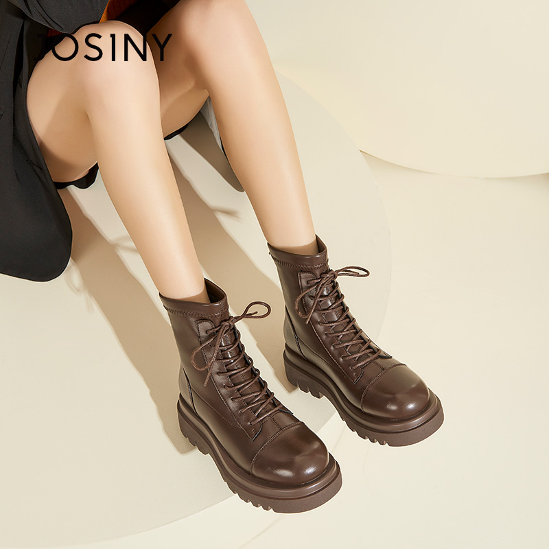 卓诗尼女鞋厚底马丁靴复古拼接圆头百搭英伦瘦瘦靴秋冬款马丁短靴
