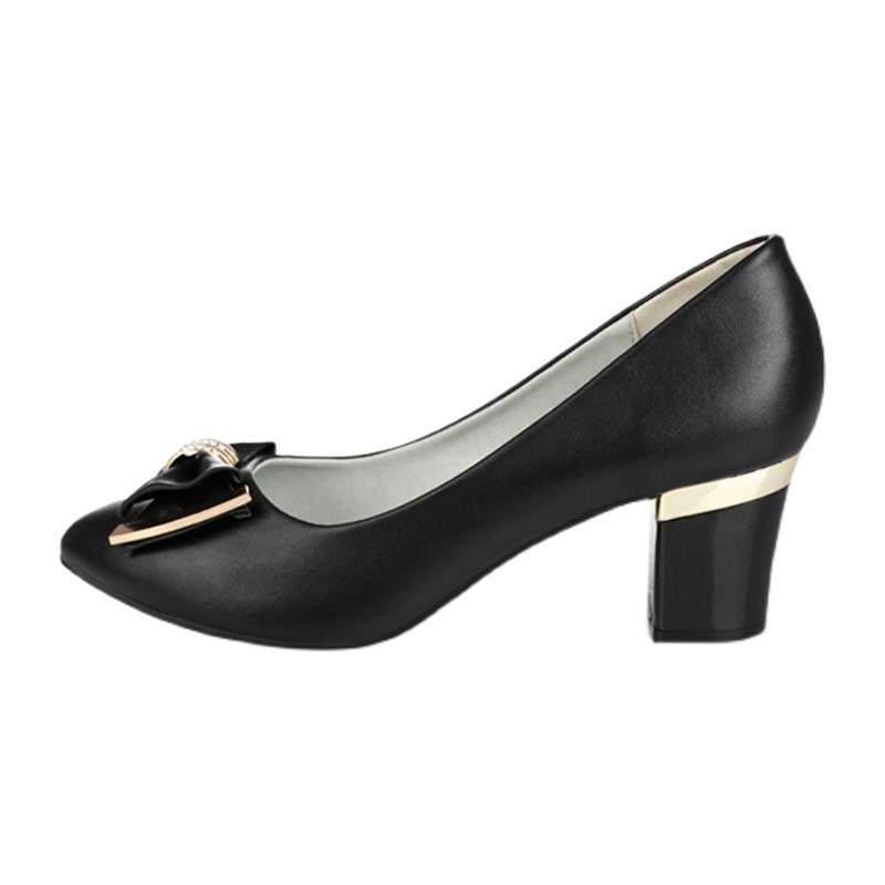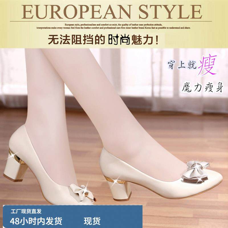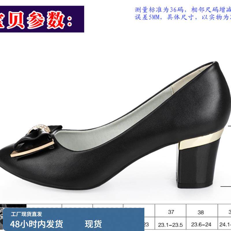 真皮单鞋女2024春季新款高跟粗跟百搭时尚尖头中跟职业工作妈妈鞋