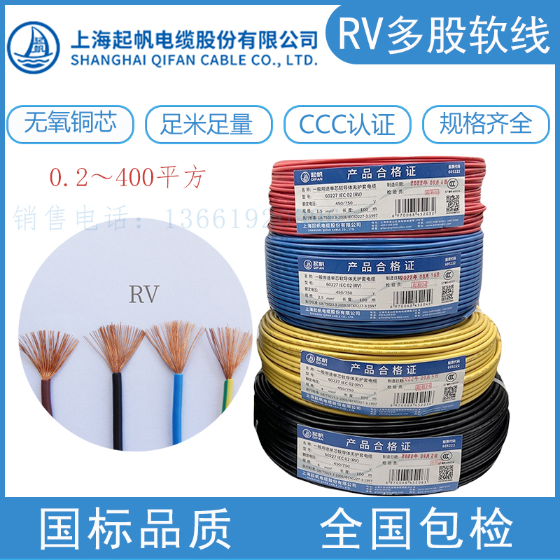 起帆RV电线0.2 0.3 0.75 1.5 2.5 4 6 10平方国标多股铜芯软线红