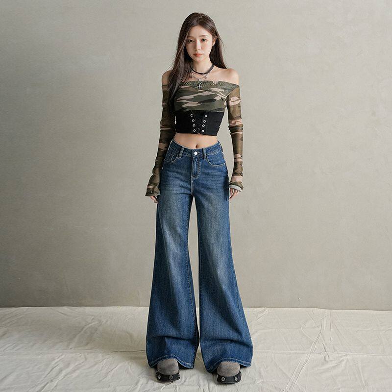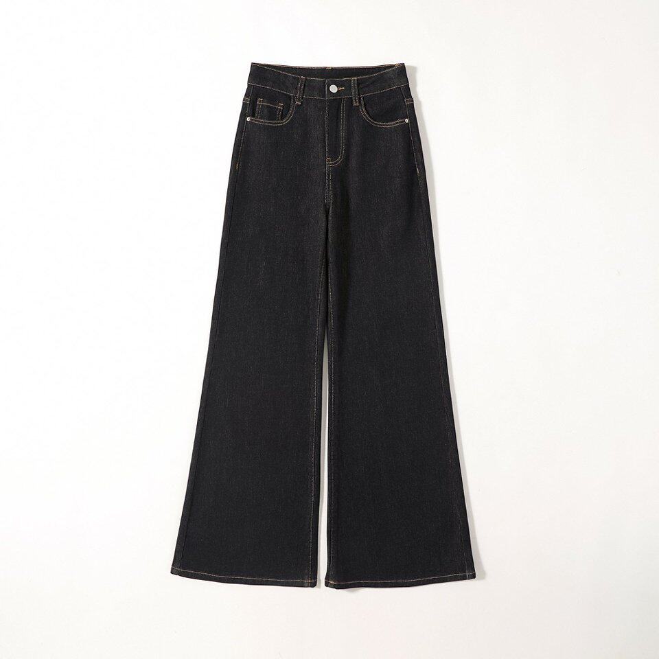 【蜜蜂欢乐社】JWUW冬季加绒高腰不贴腿微喇牛仔裤女阔腿喇叭长裤