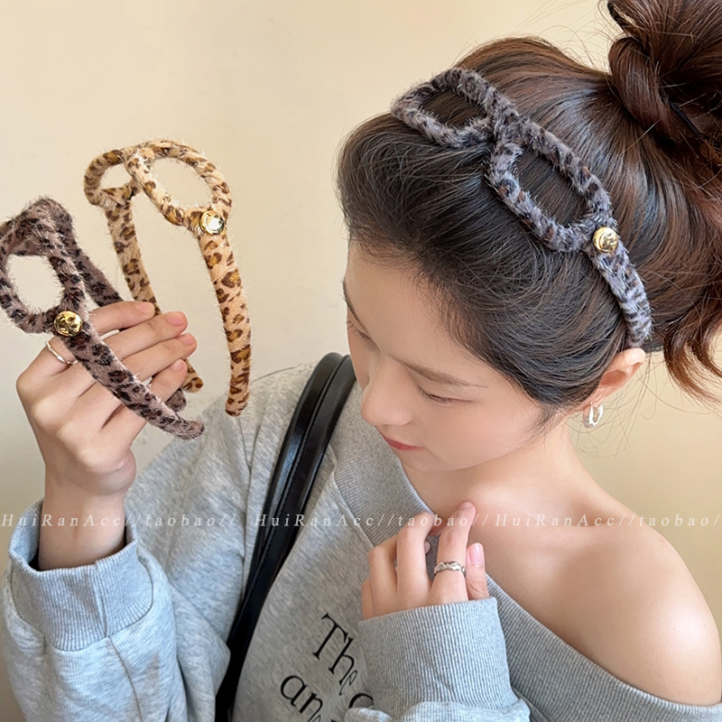 豹纹发箍女高级感头箍高颅顶时尚洋气头箍发卡外出百搭小众设计感