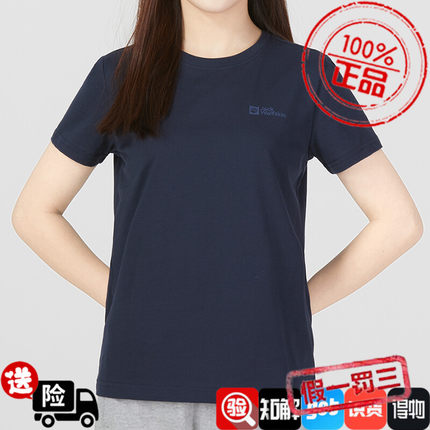 狼爪短袖上衣女2023夏季新款户外运动服藏青色宽松透气T恤5823161