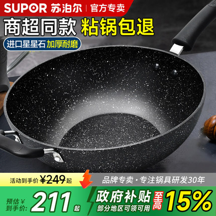 苏泊尔不粘锅炒锅麦饭石色家用炒菜锅电磁炉燃气灶煤气灶专用平底