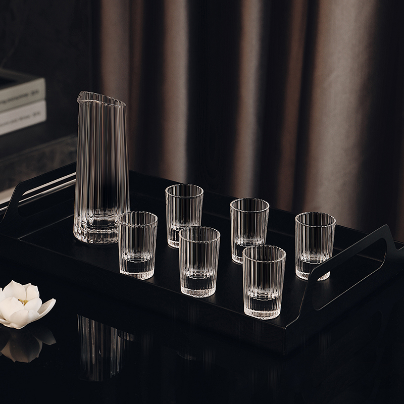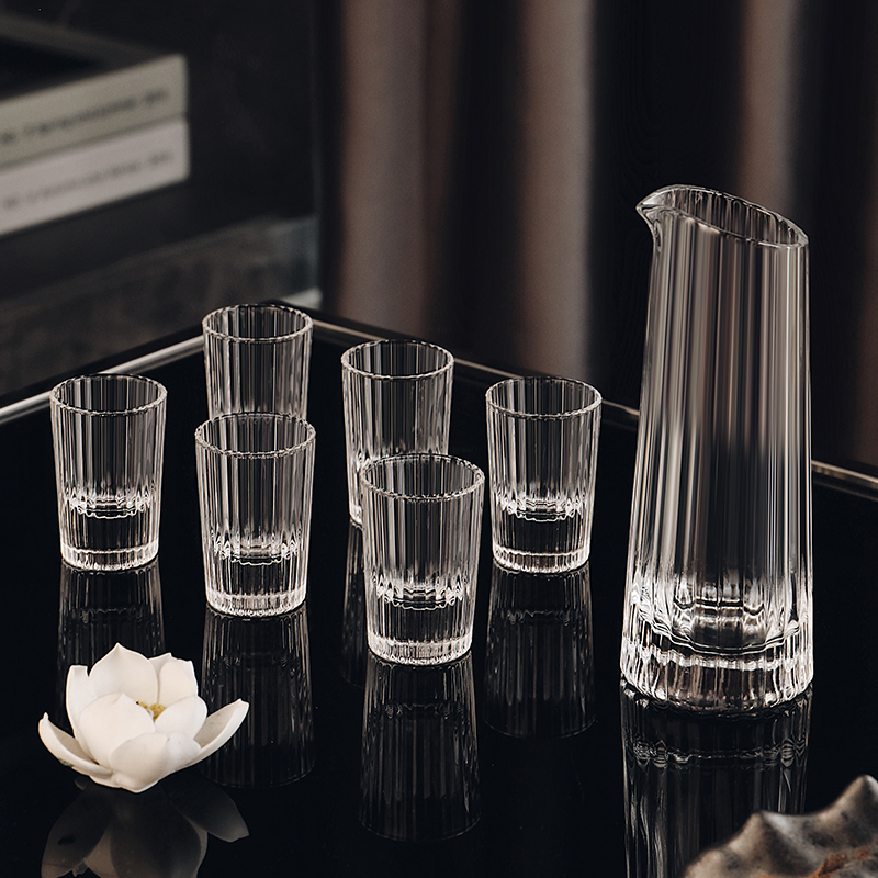 轻奢高颜值竖纹白酒杯分酒器套装水晶玻璃家用小酒杯创意个性酒具
