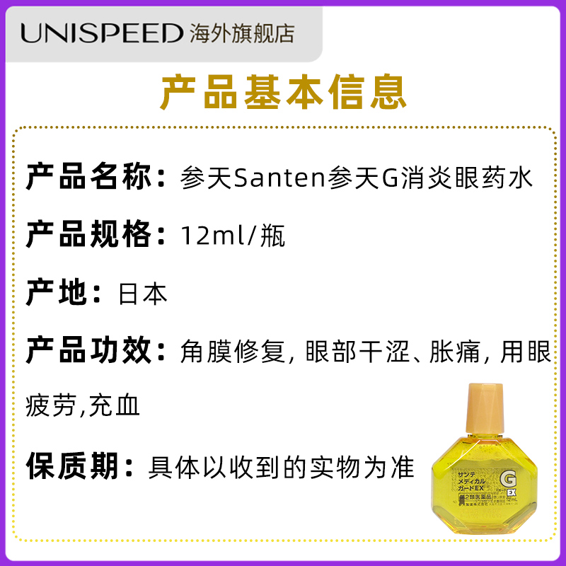 日本santen参天G眼药水滴眼液12ml缓解炎症润眼液防干眼症防疲劳