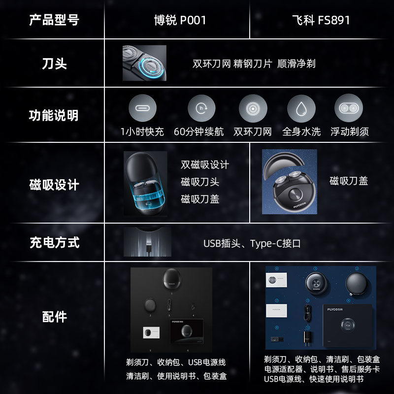 飞科双刀头小飞碟电动男士剃须刀