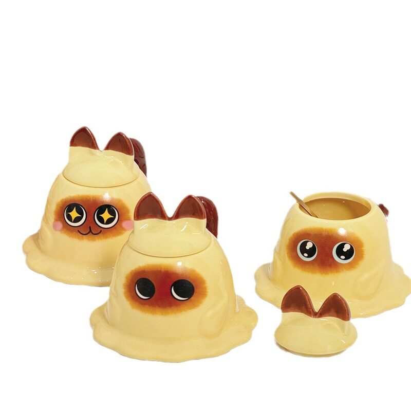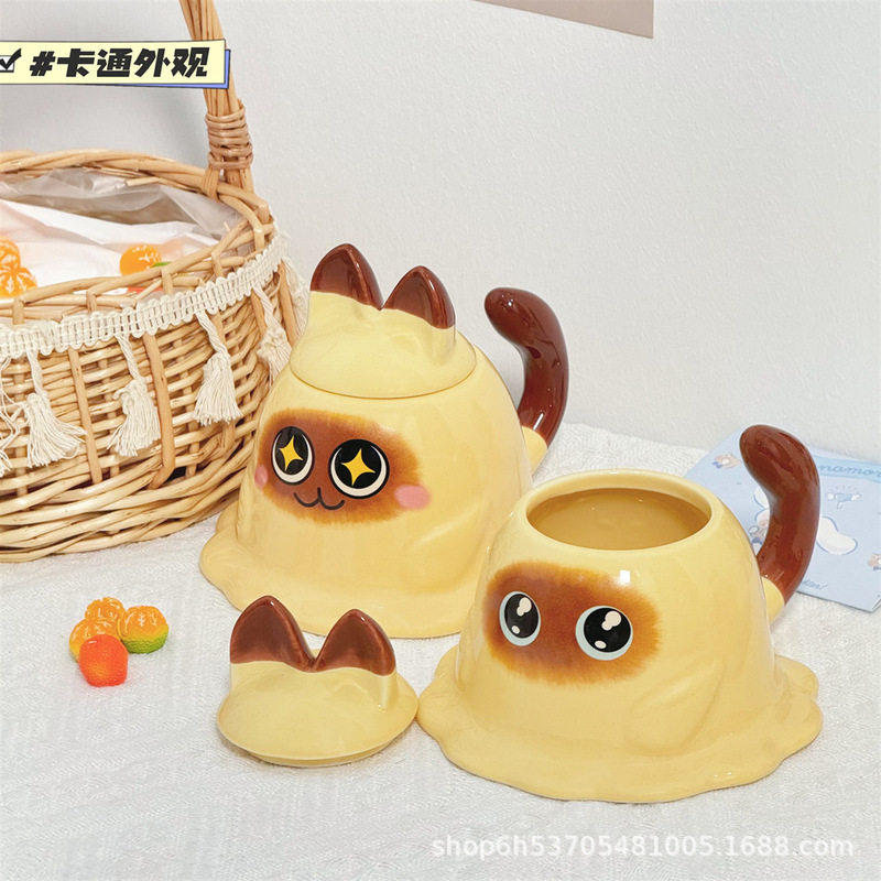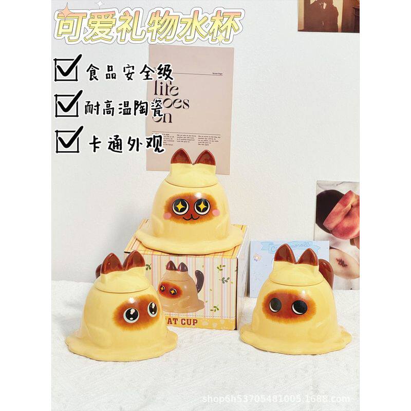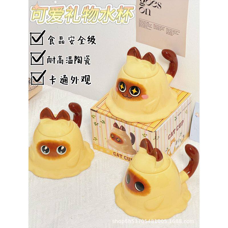 暹罗猫杯子高颜值陶瓷杯卡通可爱马克杯生日礼物带盖水杯【专利】