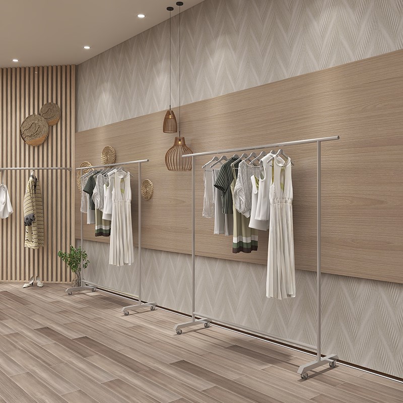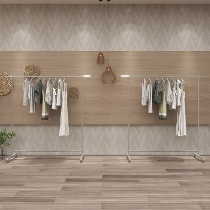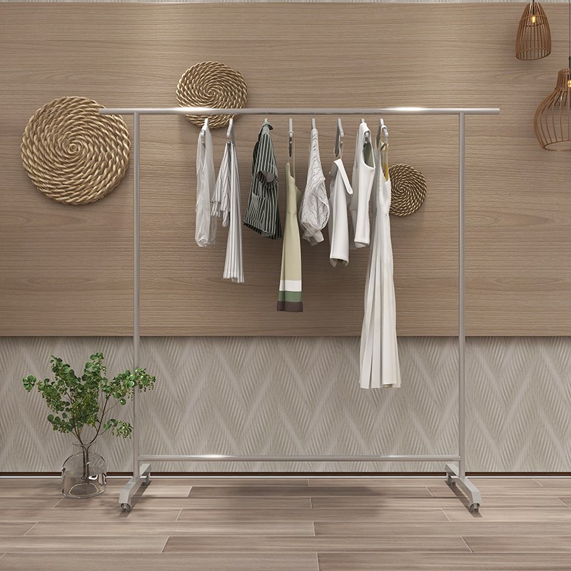 服装店展示架简约风晾衣架不锈钢拉丝银带轮子可移动衣帽架衣服架